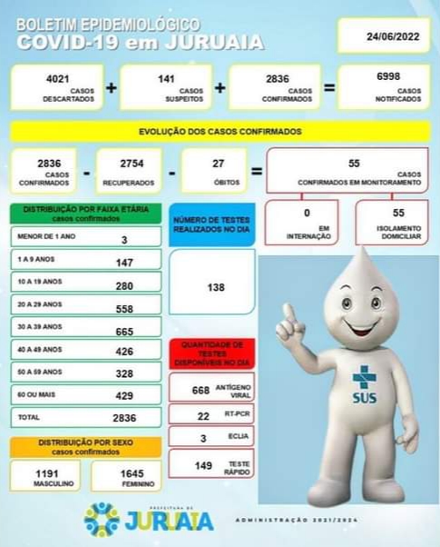 A Secretaria Municipal de Saúde informa que nesta semana Juruaia teve 110 atendimentos na unidade covid Bairro Mirante e 74 notificações de pacientes que apresentaram sintomas gripais.