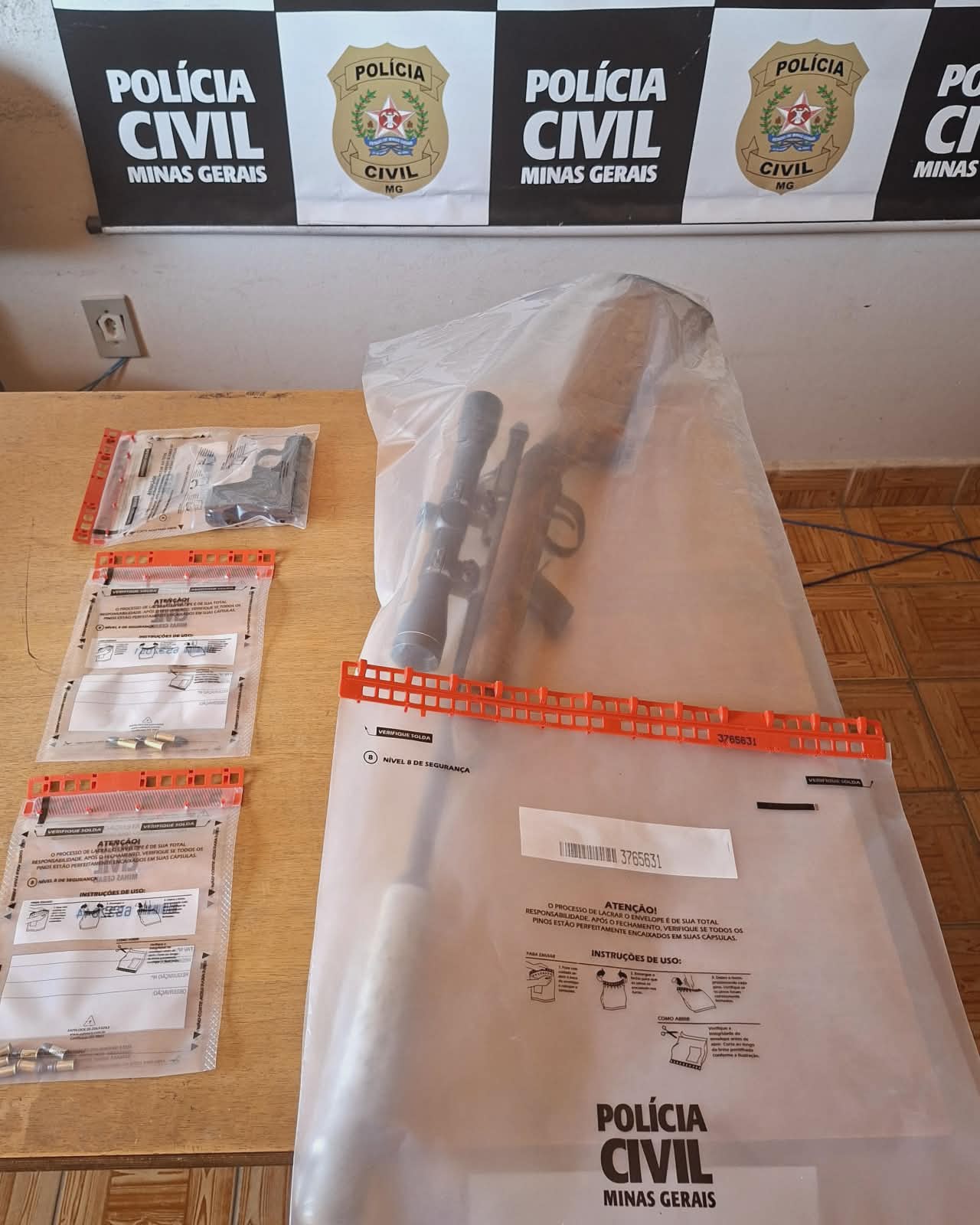 As investigações da Polícia Civil de Minas Gerais (PCMG) sobre ameaças, em razão de desentendimentos envolvendo propriedades rurais, resultaram na apreensão de duas armas de fogo, durante cumprimento de mandado judicial, nessa quinta-feira (16/4), em Poço Fundo, no Sul do estado.