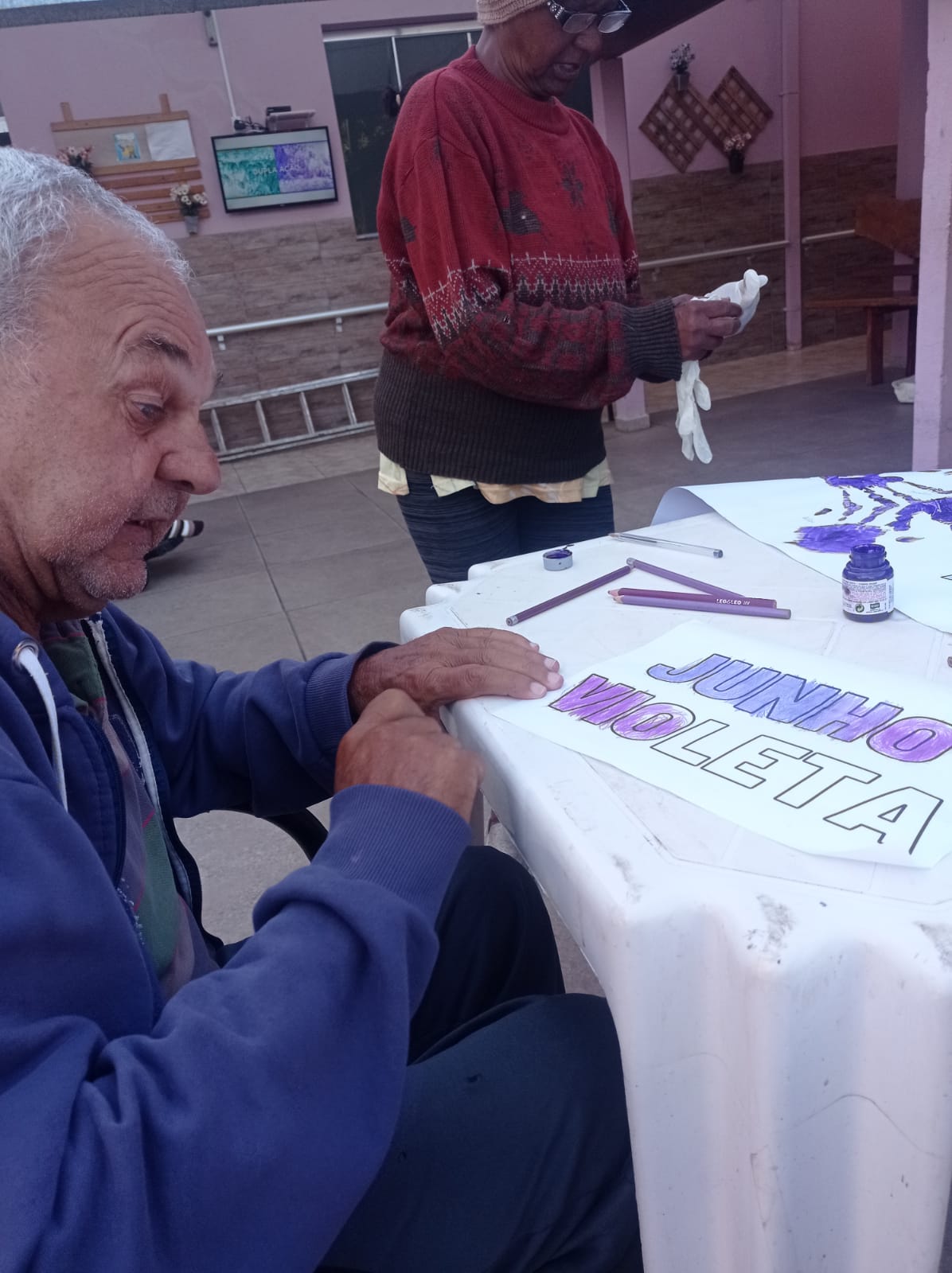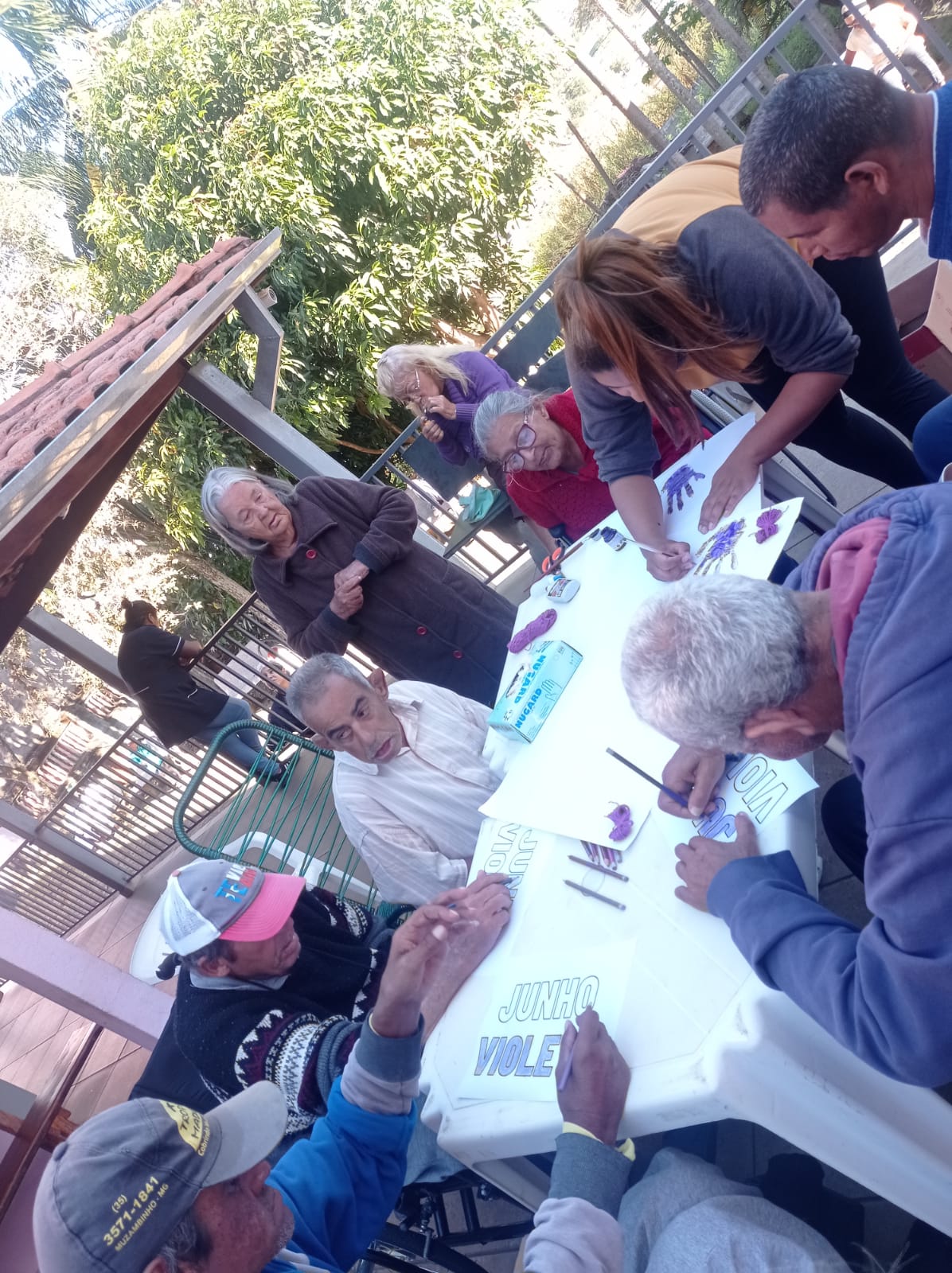 Na segunda-feira (26), a Oficina de Serviço de Convivência e Fortalecimento de Vínculos aconteceu no Asilo São Vicente de Paula. A ação contou com a ajuda dos idosos para a confecção manual de cartazes com caráter de conscientização de sobre a violência contra a pessoa idosa, em alusão ao Junho Violeta. Vale salientar a participação ativa e lúdica dos idosos.