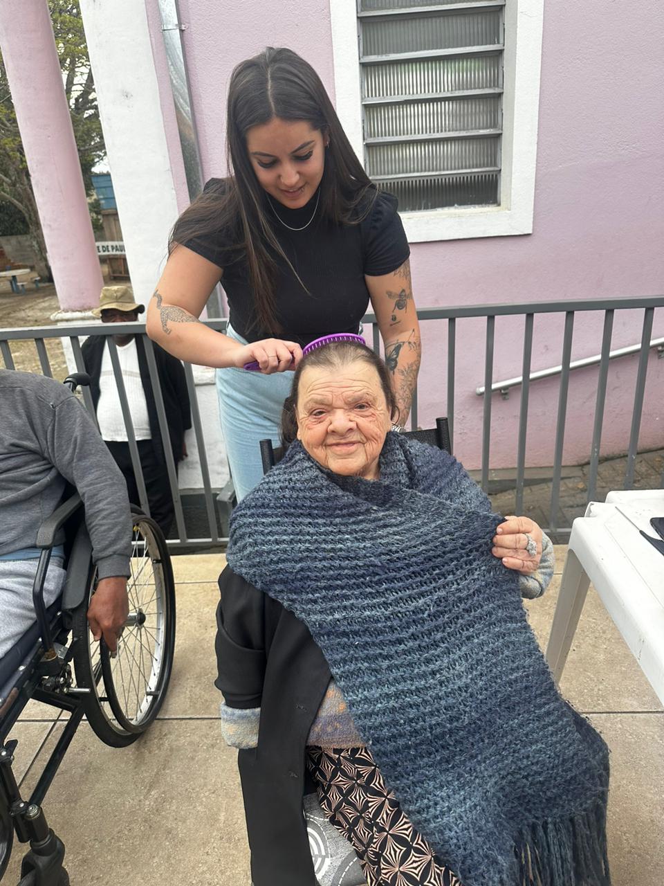 Colaboraram: Silvana e Fabrícia (manicure), Larissa Ferreira (trancista), Julia Araújo (cabeleireira), Valéria (voluntária), Thiago Tristão e Edvaldo (barbeiro). As imagens relatam toda a ação, sem a necessidade de legenda, com uma grande dose de emoção.