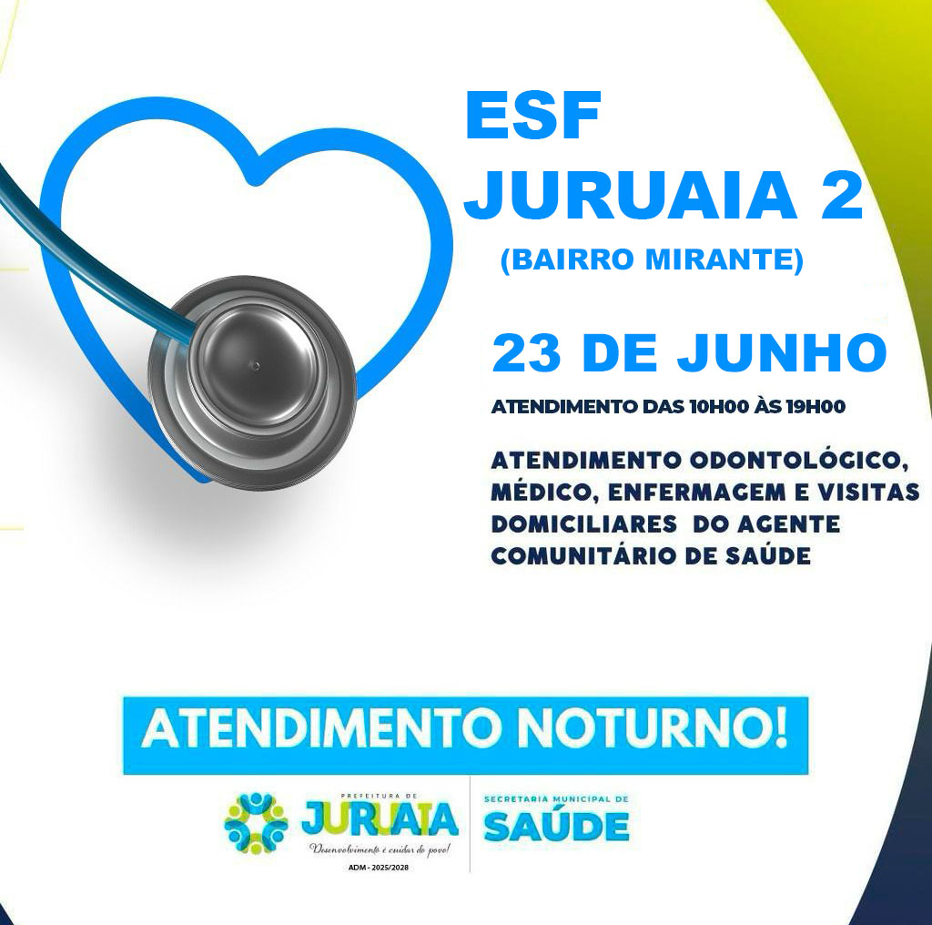 Buscando sempre melhorar e ampliar o acesso aos serviços de Atenção Primária à Saúde por meio do funcionamento das Unidades de Saúde da Família, informamos que, no dia 23/06/2025, a Unidade de Saúde da Família ESF Juruaia 2 funcionará das 10h às 19h.