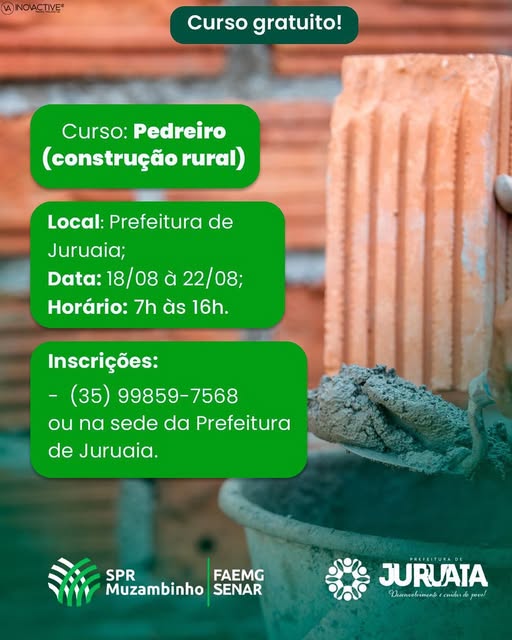 Garanta sua vaga! As inscrições podem ser feitas pelo WhatsApp no número (35) 99859-7568 ou presencialmente na sede da Prefeitura de Juruaia.