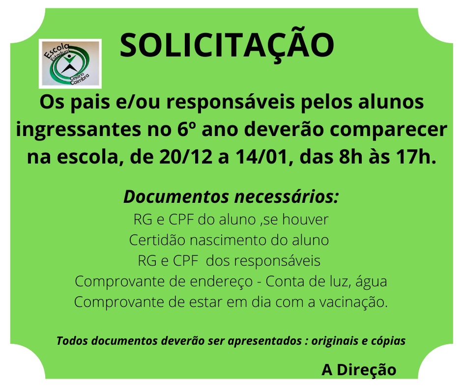 Atenção senhores pais e/ou responsáveis para o comunicado da Escola Estadual Cesário Coimbra em Muzambinho