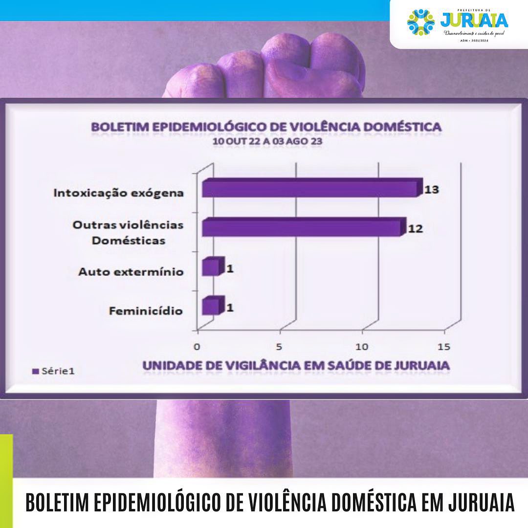 Os dados do gráfico são registros do SINAN (Sistema de Informações de Agravos de Notificação). Representam informações registradas do período de 10 de outubro de 2022 a 03 agosto de 2023, no município de Juruaia. As barras indicam a quantidade de notificações existentes no período.