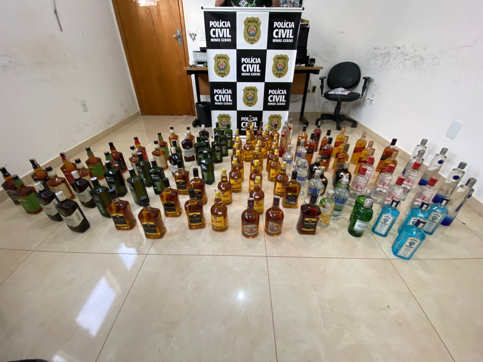 A Polícia Civil de Minas Gerais (PCMG), por meio da Delegacia de Polícia de Bom Jesus da Penha, apreendeu cerca de 100 garrafas de bebidas destiladas falsificadas durante fiscalização realizada na tarde da segunda-feira (6/10), em um estabelecimento comercial do município.