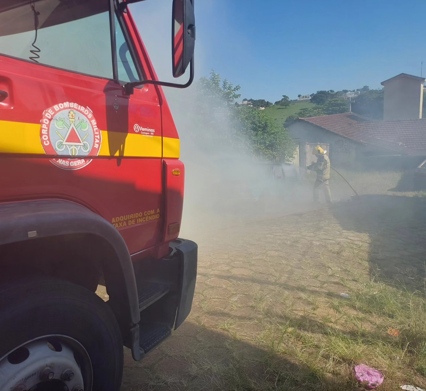 Bombeiros combateram incêndio em veículo na manhã do domingo em Guaxupé