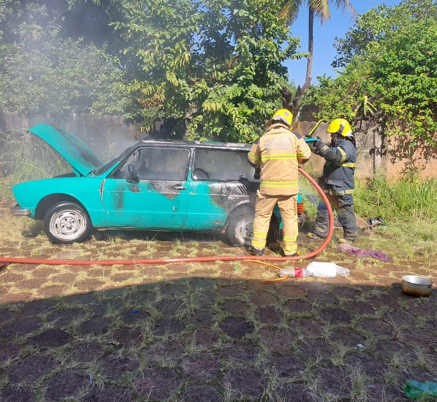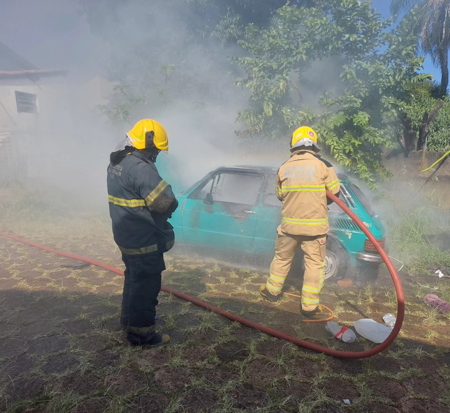 A equipe de combate a incêndios do 2º Pelotão de Bombeiros foi acionada e em uma ação rápida de combate direto, conseguiu extinguir as chamas. O veículo ficou parcialmente destruído. Felizmente ninguém se feriu.