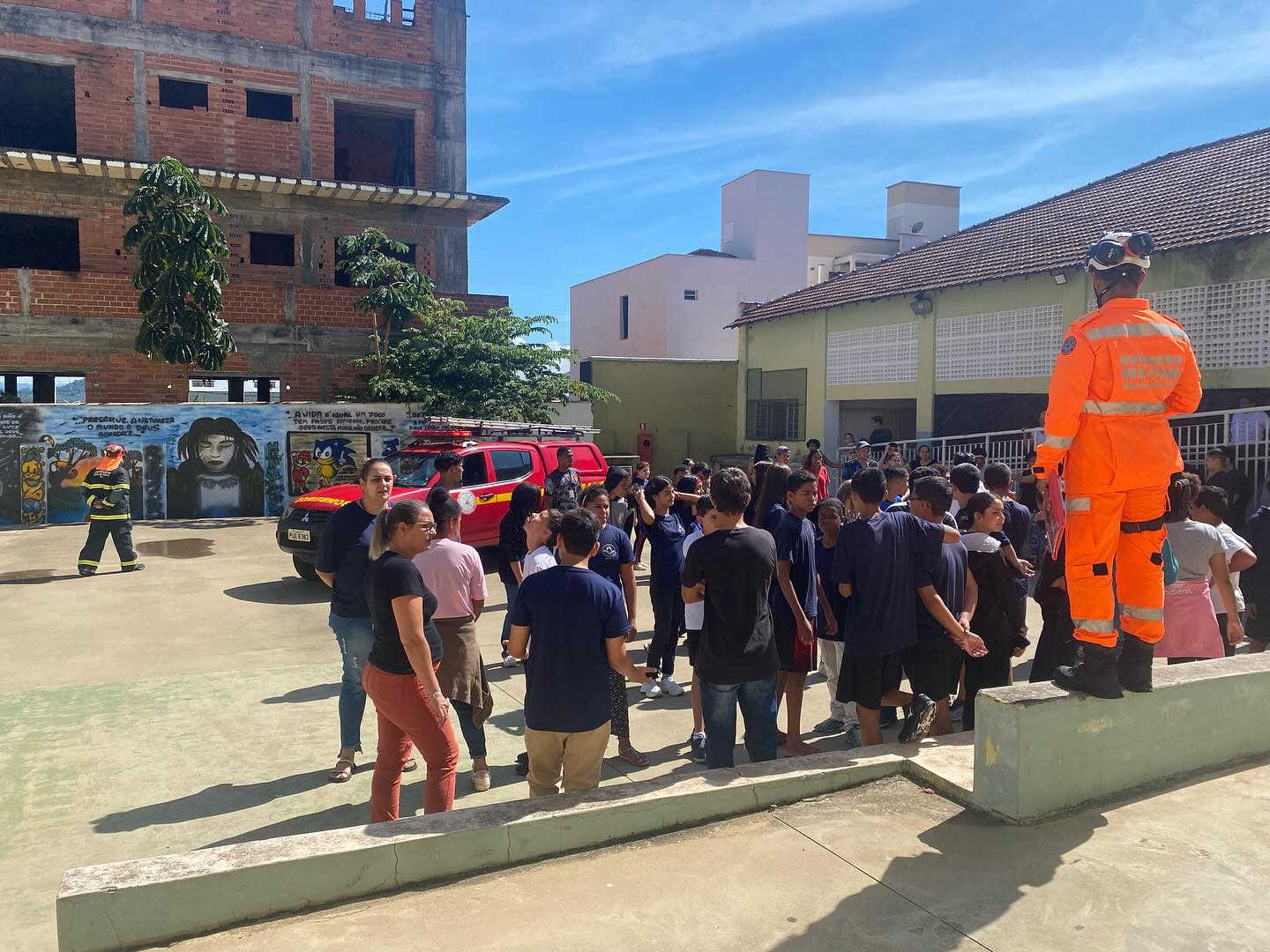 O evento em questão consiste em um treinamento realizado para reproduzir uma possível ocorrência de emergência, visando otimizar os procedimentos adequados a situações de Incêndio e Pânico. Na ocasião, foi simulado um incêndio no 2º andar da escola, onde as turmas realizaram a evacuação com sucesso, de forma ágil e eficiente. Após a chegada da viatura e encontro de todos participantes no pátio da escola, definido como Ponto de Encontro, foi feito um debriefing da operação, que se trata de discutir o que foi feito e levantar pontos importantes da experiência.