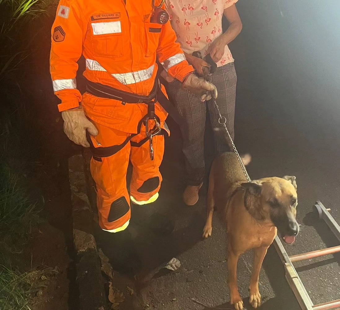 Bombeiros do 2º Pelotão foram acionados no início da noite da segunda-feira para resgatar um cão em situação de risco no bairro Jardim Agenor de Lima, Guaxupé.
