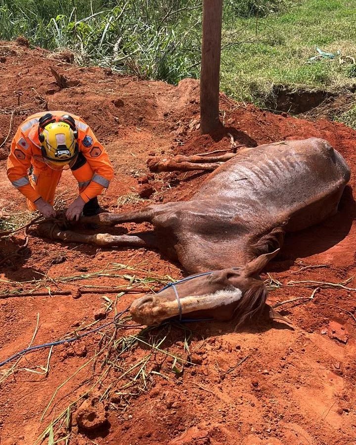 A equipe de Salvamento Terrestre do 2º Pelotão de Bombeiros resgatou com sucesso, nesta quarta-feira, uma égua que caiu em um córrego, no sitio São João, próximo a empresa JF Pasqua em Guaxupé. O animal foi resgatado com a ajuda de uma retroescavadeira cedida pela empresa JF Pasqua e posteriormente entregue ao seu proprietário.