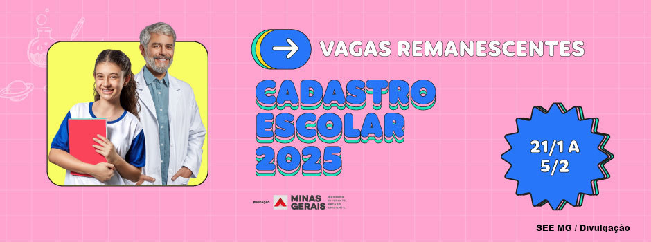 Pais, responsáveis e estudantes maiores de idade que perderam o prazo regular para o Cadastro Escolar 2025 na rede estadual pública de ensino de Minas Gerais já podem se inscrever nas vagas remanescentes do Sistema Único de Cadastro e Encaminhamento para Matrícula (Sucem), abertas até o dia 5/2.