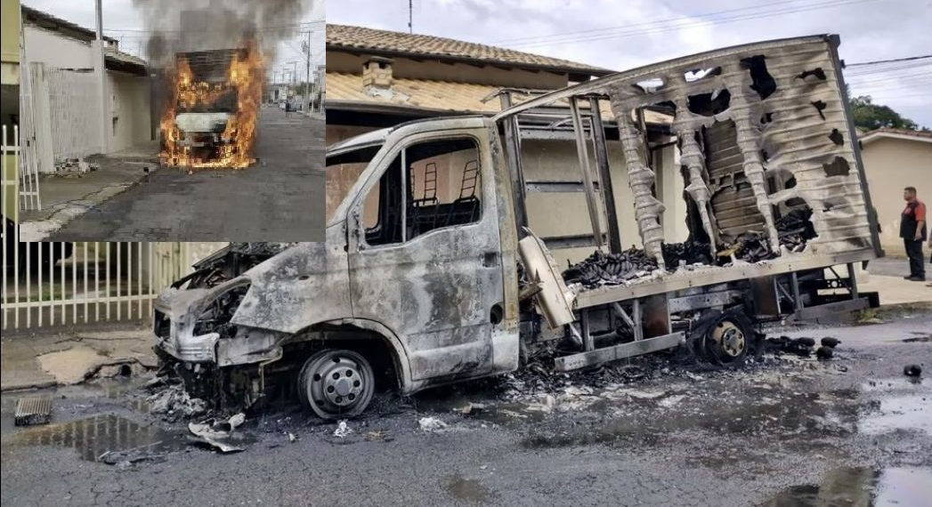 Um caminhão carregado com frutas ficou completamente destruído após pegar fogo no bairro João Teixeira Filho, em Andradas na terça-feira (29). O caminhão pertence a uma empresa e o motorista, que estava em expediente, contou que havia estacionado o veículo de frete a sua casa para almoçar quando foi avisado por vizinhos que o caminhão estava em chamas.