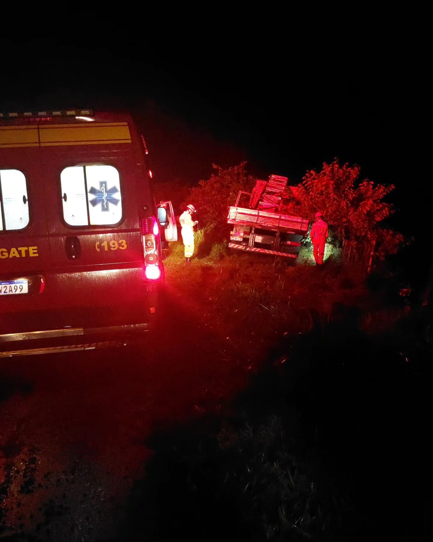 A equipe do 2º Pelotão de Bombeiros de Guaxupé deslocou na noite da sexta-feira (03), para atendimento a suposto capotamento de caminhão no Km 441 da BR 146, entre os trevos de acesso a Juruaia e Muzambinho.