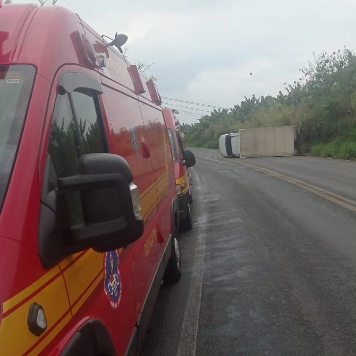 Segundo o motorista, o veículo tombou na curva devido a óleo na pista e as condições climáticas. O motorista não apresentava nenhum ferimento aparente sendo avaliado pela equipe médica do SAMU.