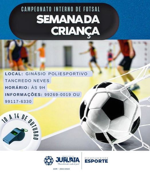 Entre os dias 10 e 14 de outubro, em comemoração à Semana da Criança, a Prefeitura de Juruaia, através do Departamento de Esportes, realiza o Campeonato Interno de Futsal.