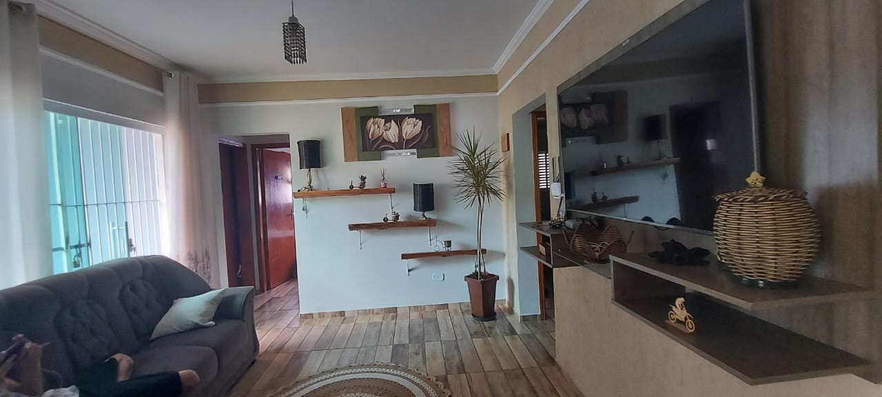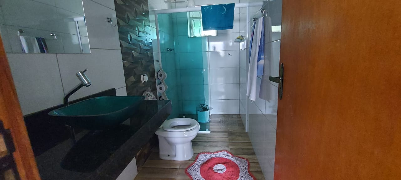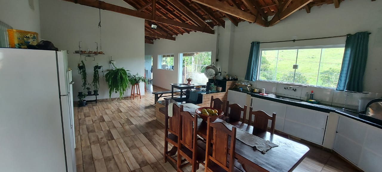 A casa tem 4 quartos, 3 banheiros e 2 cozinhas, contando com aquecimento solar.