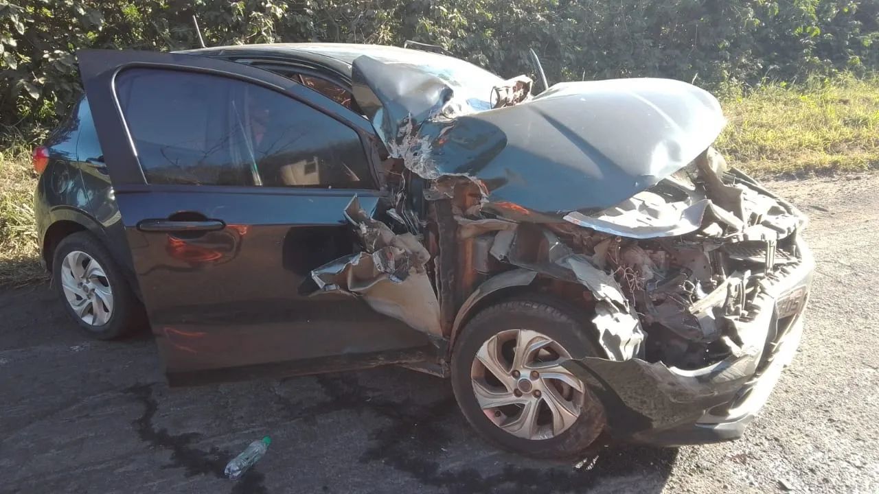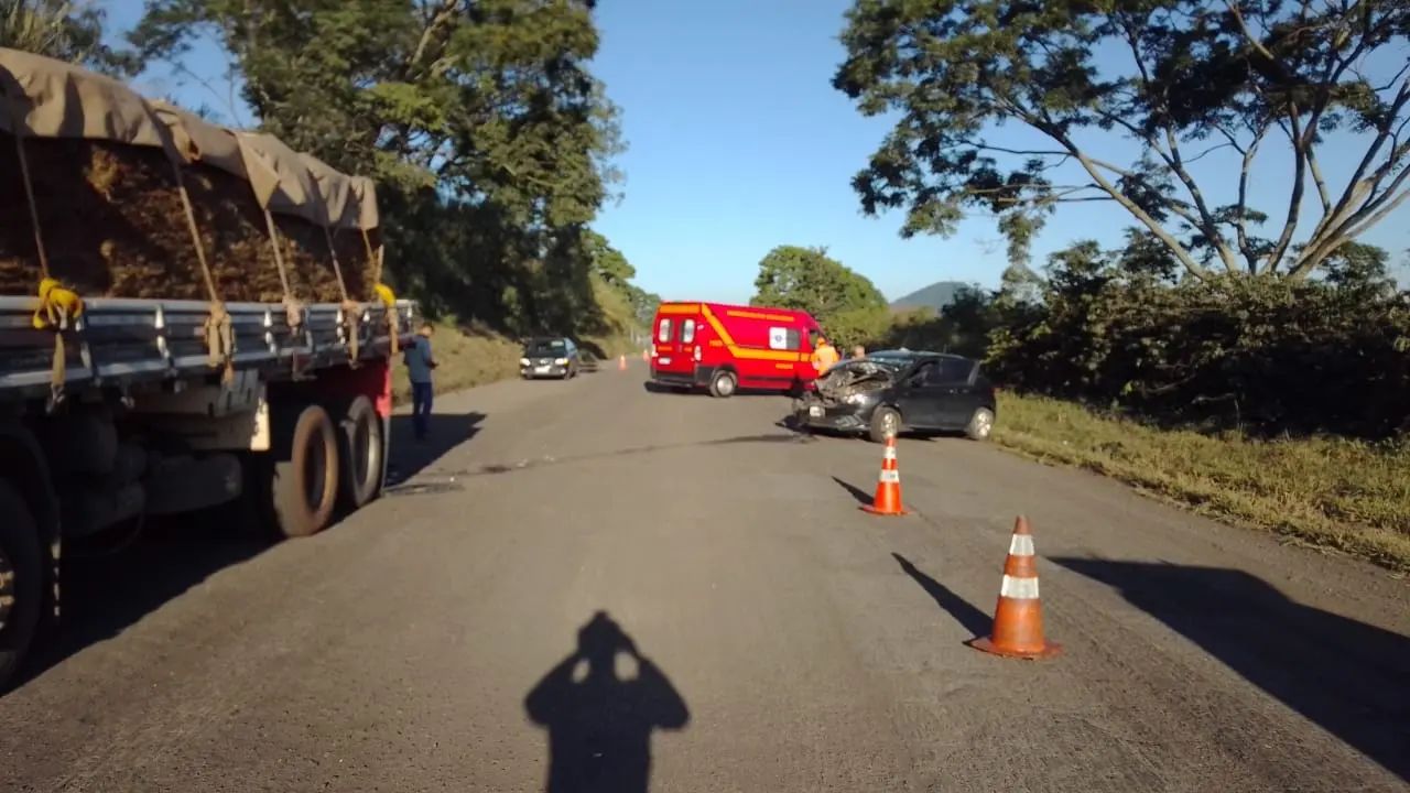 Colisão de carro com caminhão na BR 146 em Guaxupé