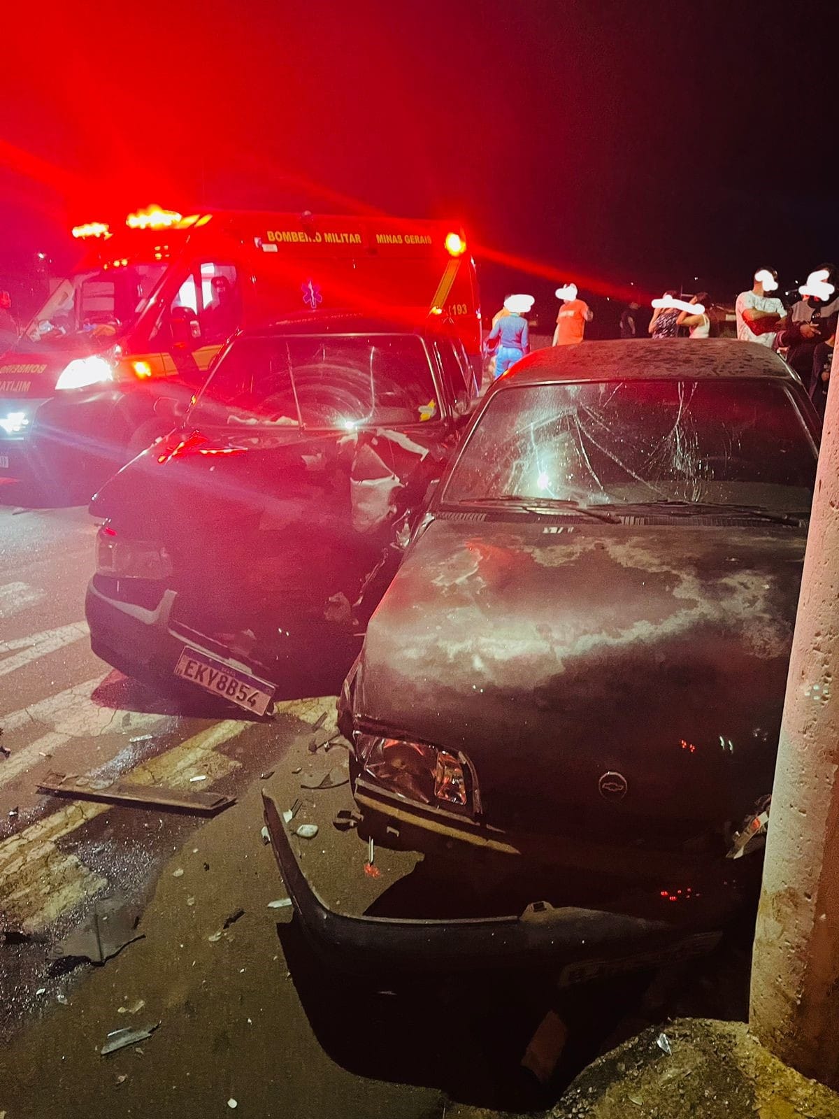 Uma guarnição de resgate do 2º Pelotão de Bombeiros de Guaxupé chegando ao local encontrou dois veículos que colidiram entre si e contra um poste da rede elétrica.
