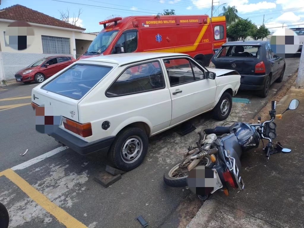 O acidente ocorreu na tarde da sexta-feira (15), por volta das 14 horas, na rua José Augusto Ribeiro do Valle. O condutor do VW Gol branco, de 51 anos, residente em Guaxupé, atingiu duas motos e um carro que estavam estacionados.