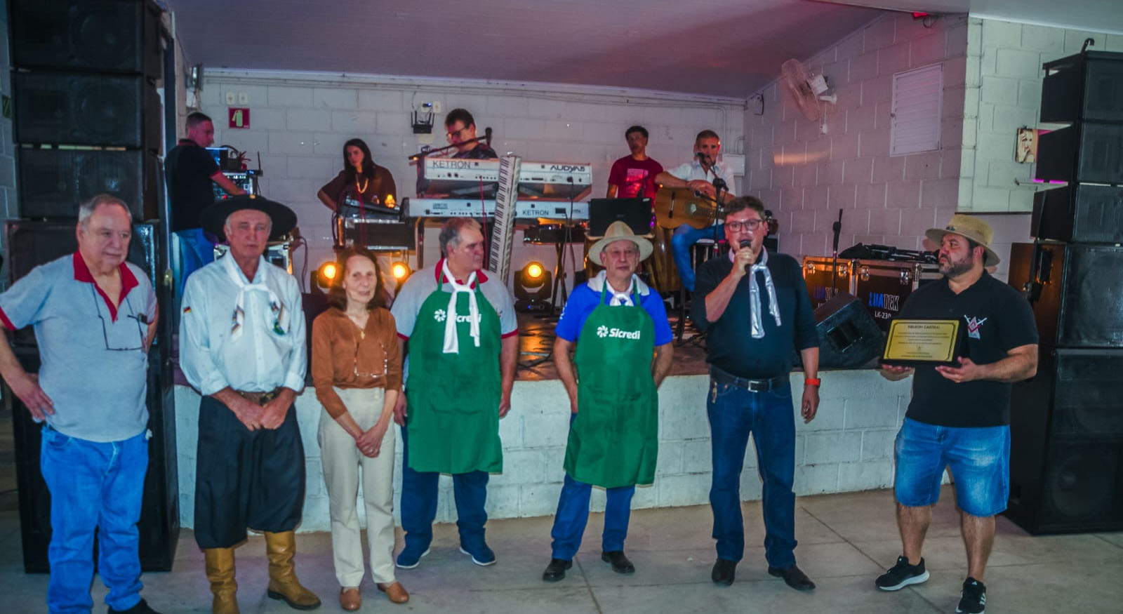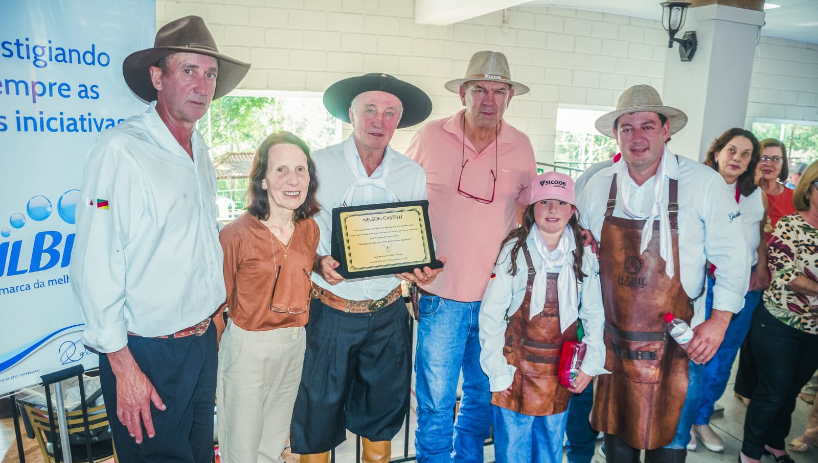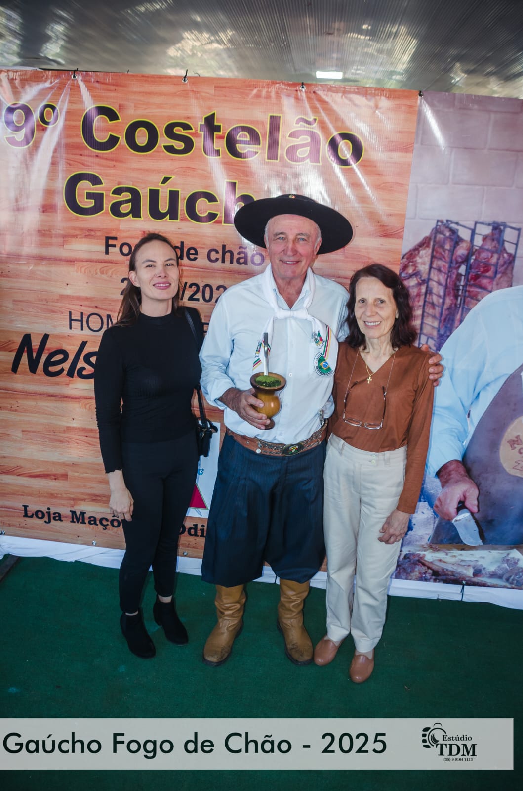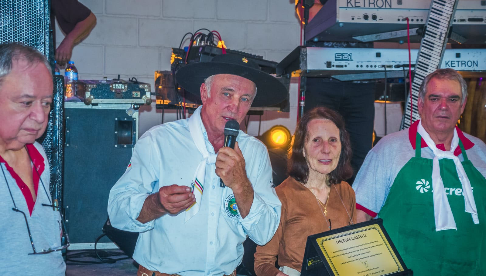 Momento especial e emocionante foi a homenagem prestada ao Sr. Nelson Castelli (na presença de esposa e filha), com banner personalizado e placa entregue pelos irmãos José Amélio Miranda, Luis Geraldo de Carvalho, Fernando A. M. da Costa e Rodrigo Máximo. Emocionado, o Sr. Nelson discursou aos presentes, falando sobre a importância do Costelão e valorizando o trabalho da Maçonaria. Por fim, dançou uma música típica gaúcha nos braços da esposa e ao som de música interpretada por Nenem Canabrava.