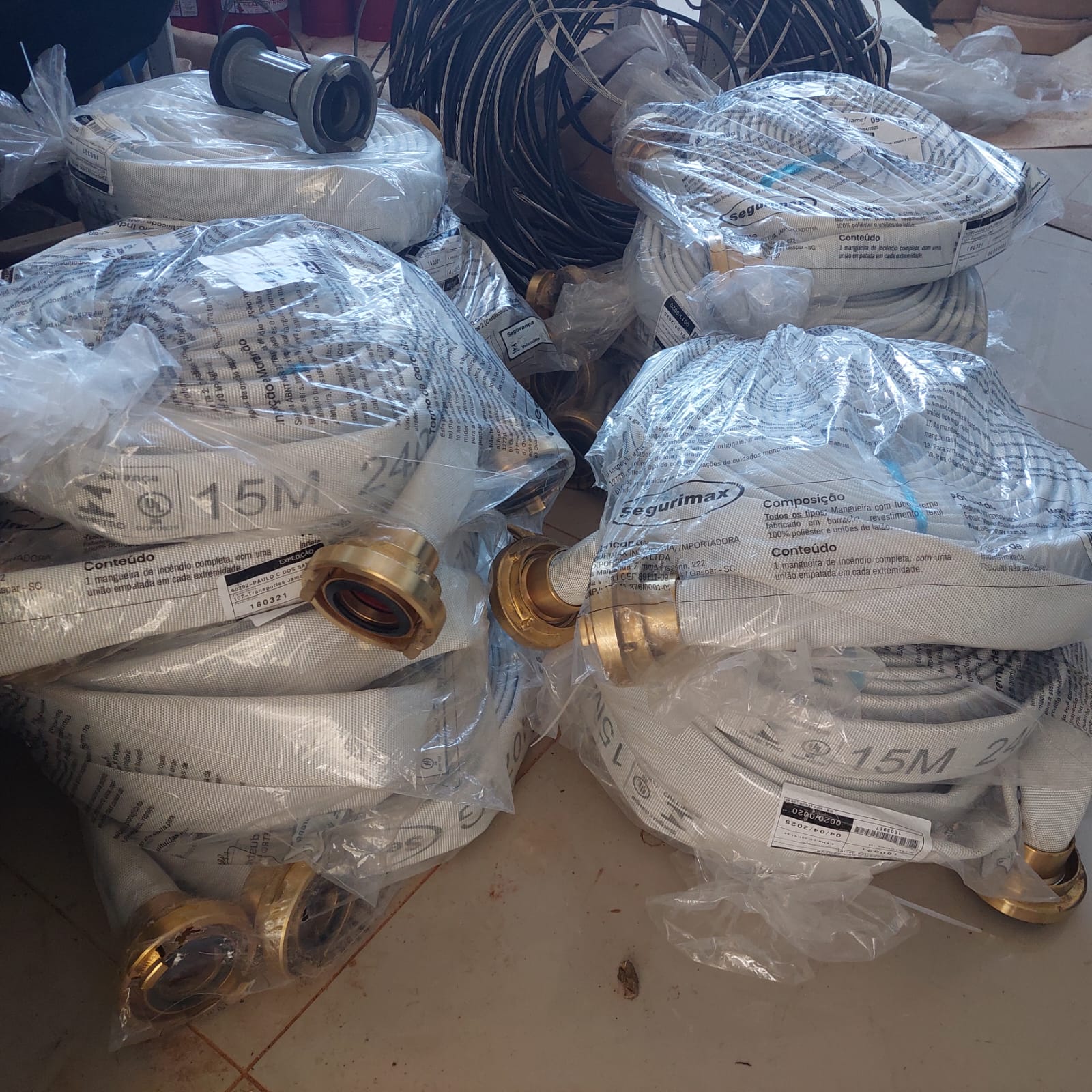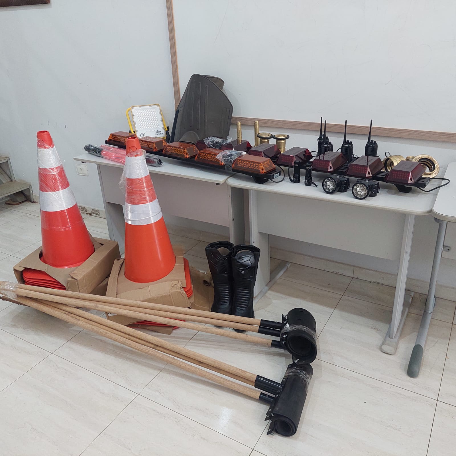 Entre os itens adquiridos estão extintores, mangueiras de incêndio, luminárias de emergência, placas de sinalização, cones, rádios comunicadores, abafadores de incêndio, lanternas, refletores e giroflex de LED para o caminhão pipa e a caminhonete da Defesa Civil.