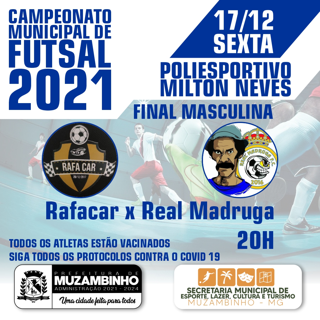No Regional Feminino, às 19 horas, Muzambinho e Guaxupé fazem a grande final. Às 20 horas, a grande final do Municipal Masculino entre Rafacar e Real Madruga.