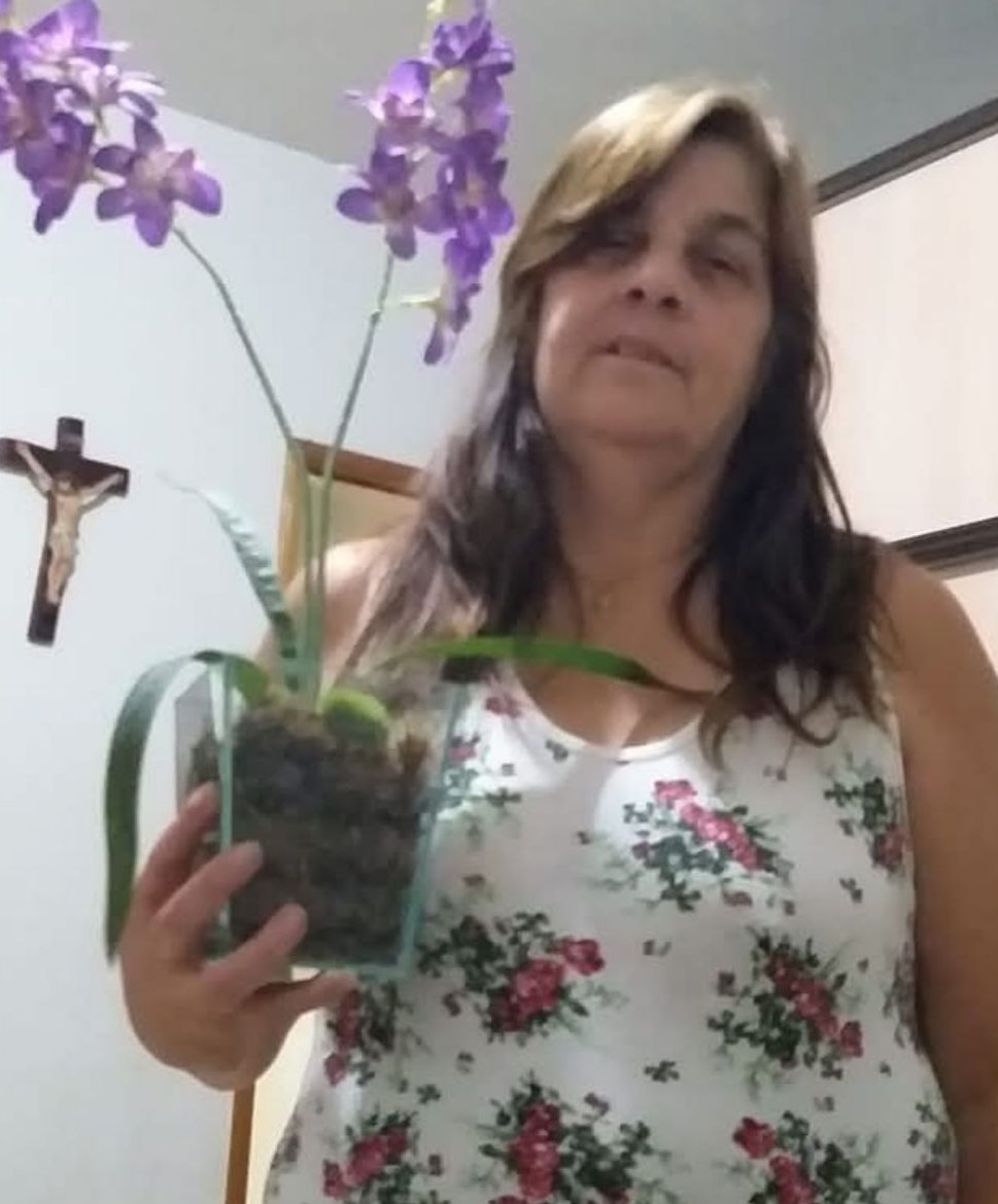 REGINA CÉLIA PULCINELLI DE REZENDE, aos 65 anos de idade, na cidade de Muzambinho/MG. Esposa do Toninho que trabalhava no Posto Jardim.