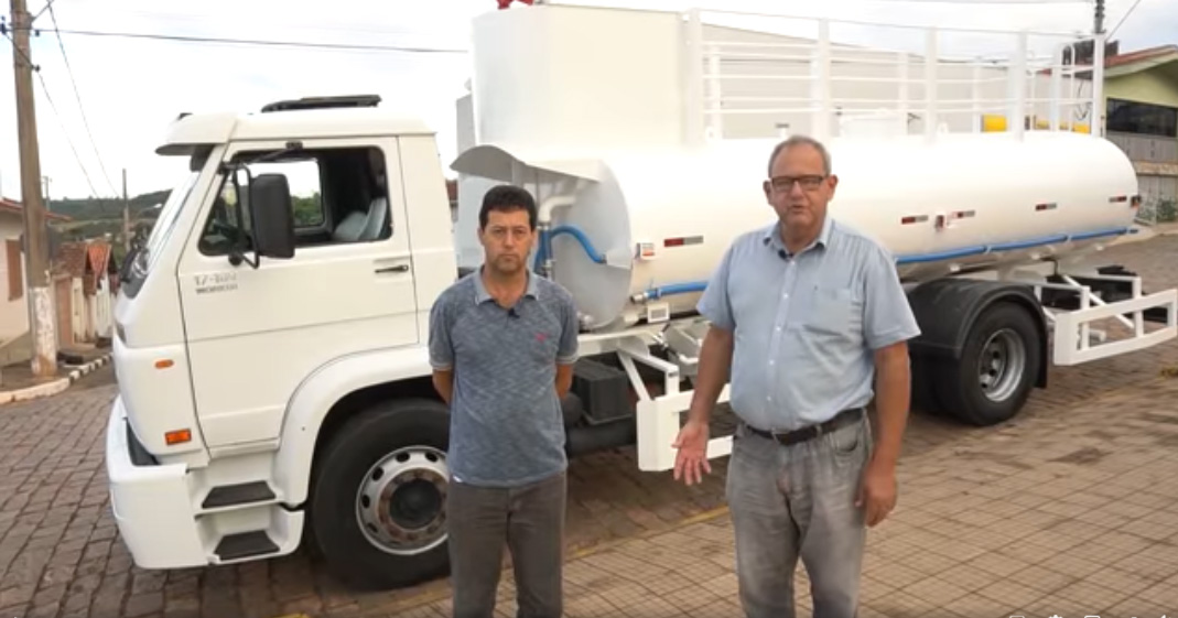 O caminhão foi adquirido com recurso do FINISA e o tanque foi adquirido com recurso próprio do município, possui capacidade de 10.000 litros e irá auxiliar para que a administração municipial consiga atender as demandas da população.