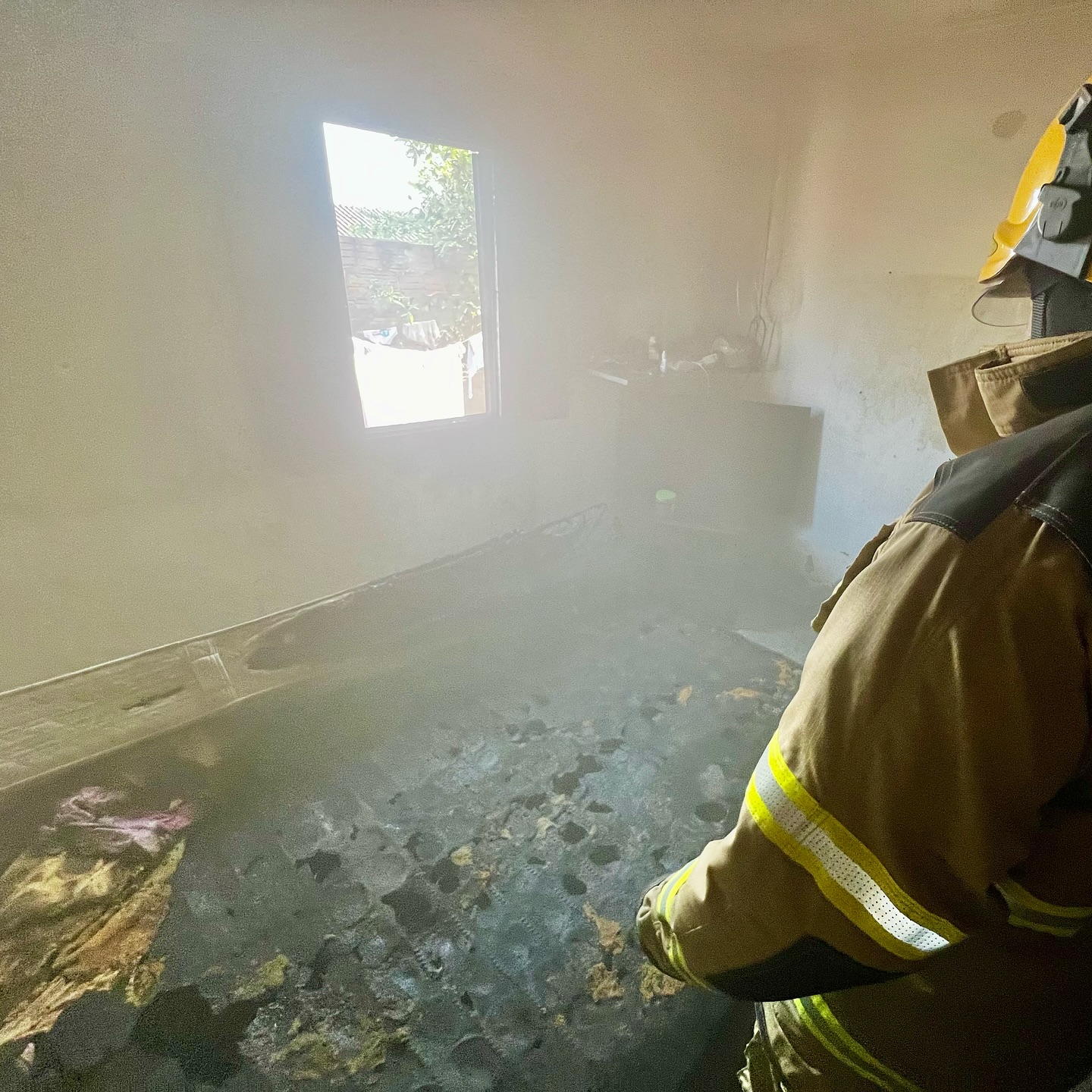 Os moradores já haviam iniciado o combate às chamas com uma mangueira de jardim, e com a chegada da guarnição de Bombeiros Militar no local foi debelado o incêndio e feito a ventilação da residência que estava com muita fumaça. O incêndio ficou confinado no quarto da casa, consumindo uma cama com colchão e danificando uma televisão. Ninguém se feriu.