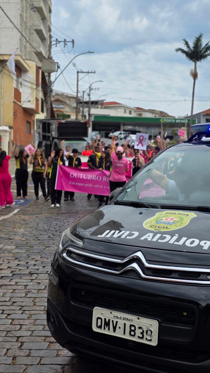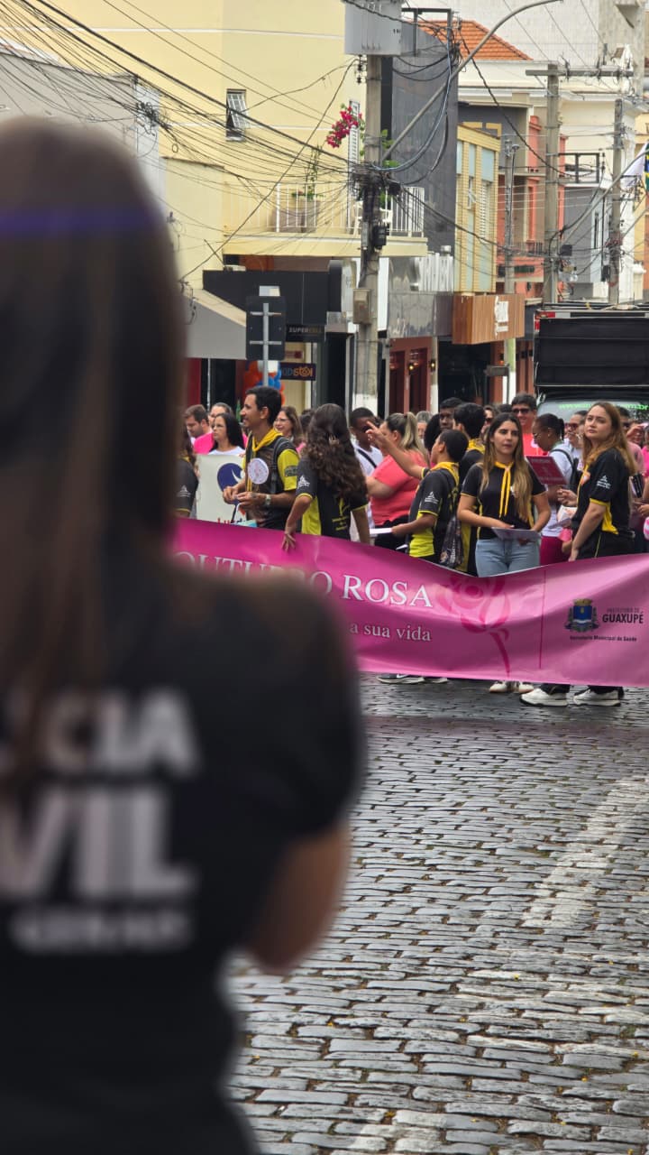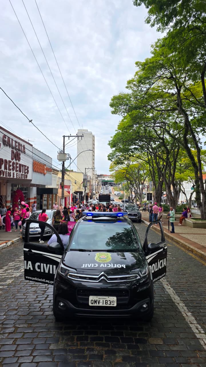 A Polícia Civil de Minas Gerais (PCMG), por meio da Delegacia Especializada de Atendimento à Mulher (DEAM) de Guaxupé, participou na manhã da sexta-feira (11/10), da Caminhada Rosa, iniciativa promovida pela Prefeitura Municipal e pela Secretaria de Saúde em alusão ao Outubro Rosa, mês dedicado à prevenção e ao diagnóstico precoce do câncer de mama.