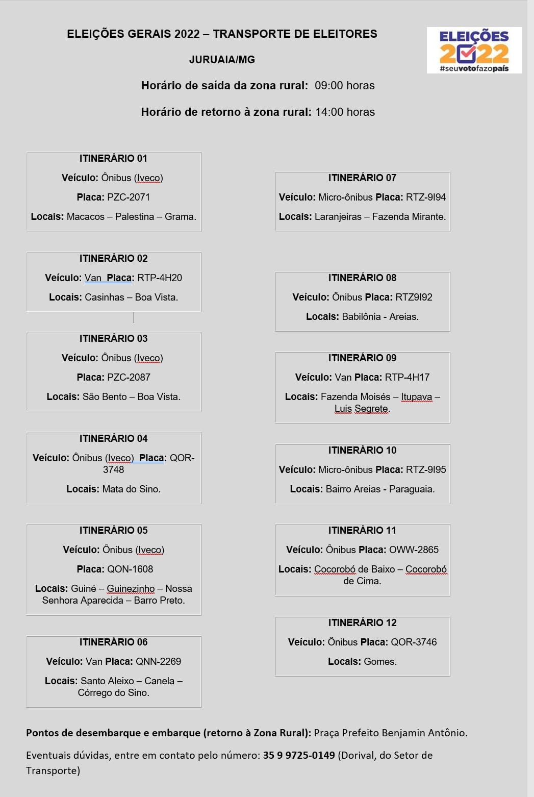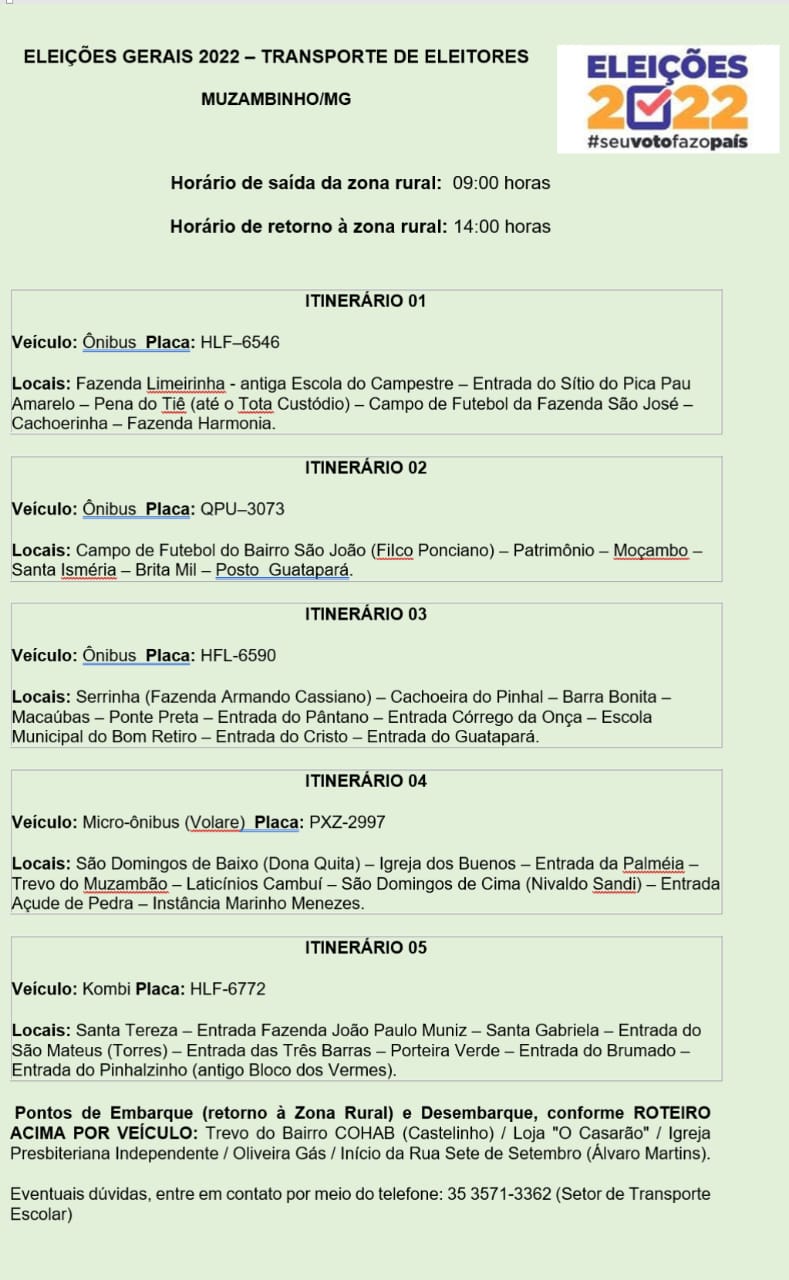 As informações são do Cartório Eleitoral de Muzambinho e Juruaia.