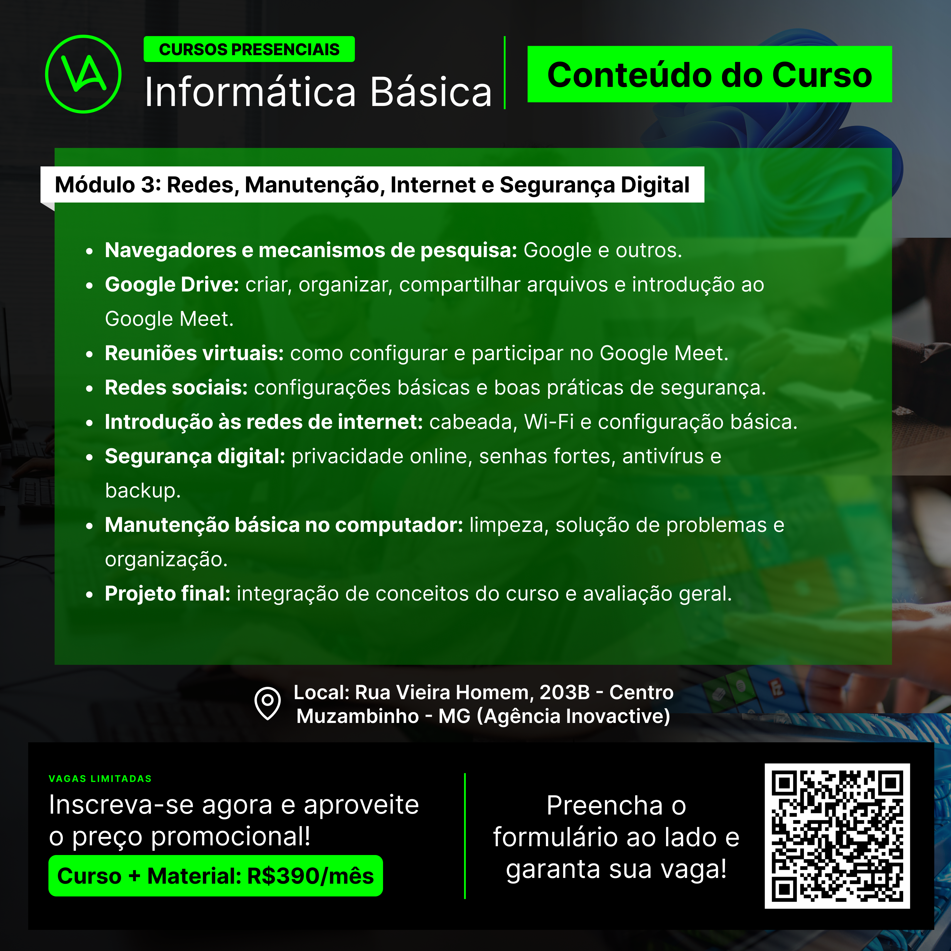 #CursoDeInformatica #InformáticaPresencial #AprendaInformatica #Windows11 #PacoteOffice #AulasPraticas #Muzambinho #CursosProfissionalizantes #SegurancaDigital
