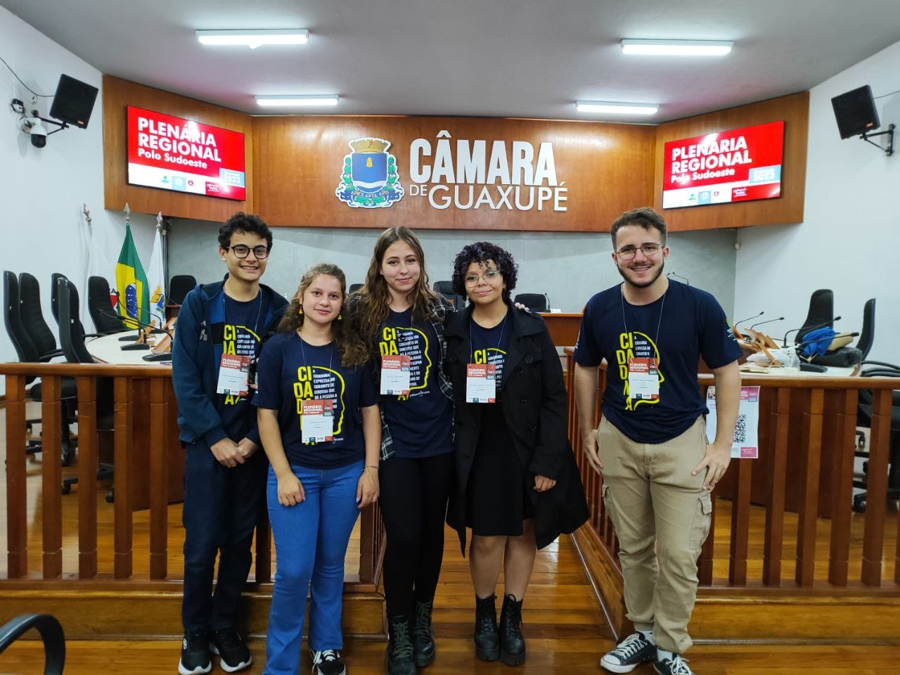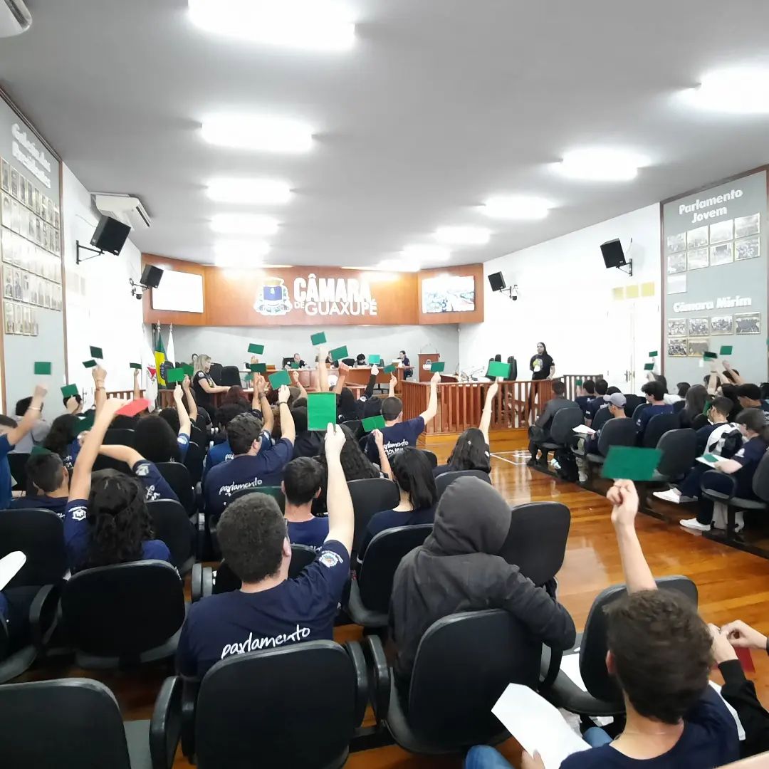 A Plenária Regional em Guaxupé reuniu estudantes do Parlamento Jovem de 18 municípios da região. Muzambinho esteve representada pelos estudantes Bernardo, Felipe e Sara (Campus Muzambinho), Anan Clara e Ana Luisa (Escola Salatiel de Almeida).