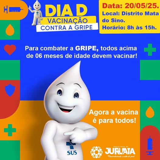 No próximo dia 20 de maio de 2025, o Distrito da Mata do Sino, em Juruaia, se prepara para o Dia D de vacinação contra a gripe, uma ação importante para proteger a população contra o vírus influenza.
