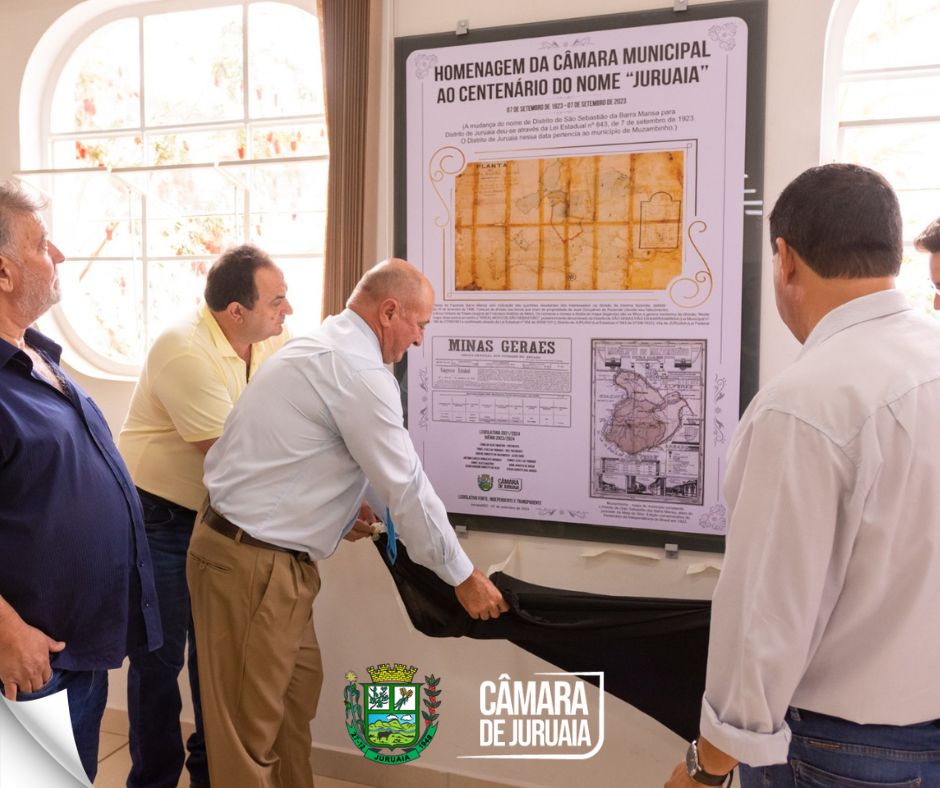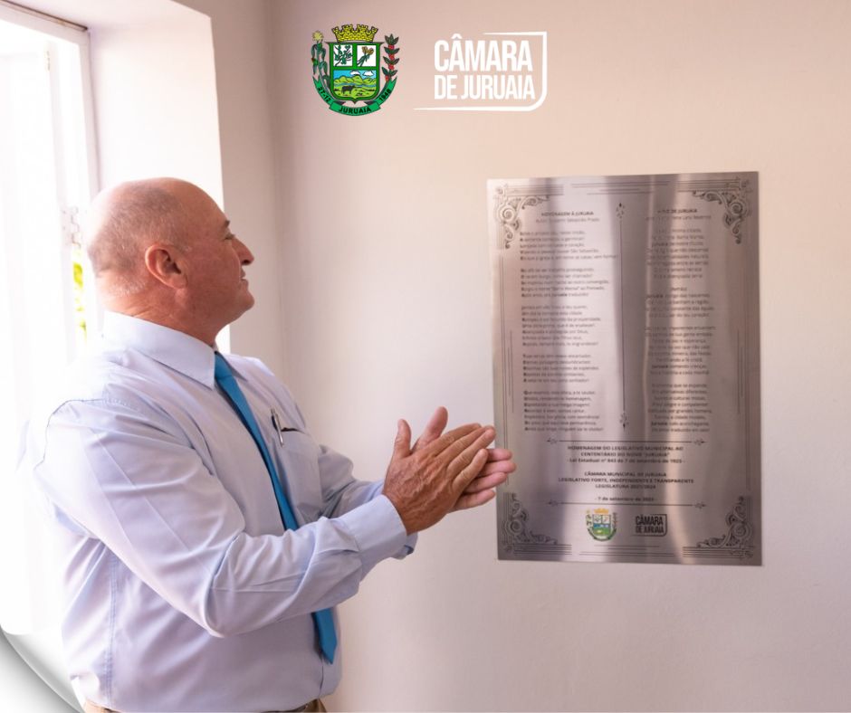 Reforçando o momento e a data histórica, na qual comemorou-se o centenário da oficialização do nome Juruaia, o Legislativo Municipal também inaugurou uma placa com o Hino de Juruaia, de autoria de Maria Irene, juntamente com um poema denominado Homenagem à Juruaia, de autoria de Eudamir (Mirzo, como era conhecido).