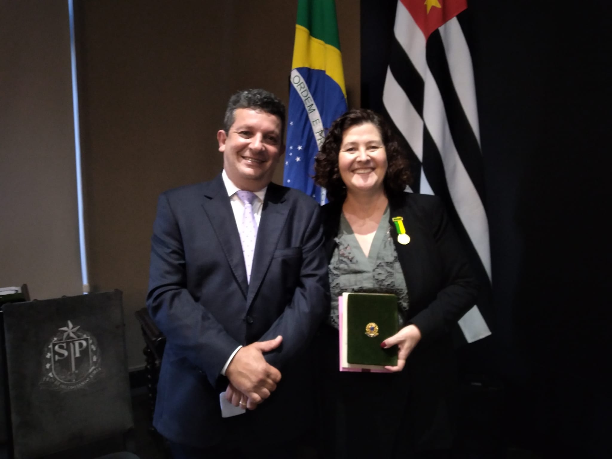 Dra. Rossana Pulcinelli, filha dos queridos Dr. Ivonaldo Vieira (“Nadinho”) e Regina, recebeu a Medalha Ruth Cardoso em solenidade no Palácio dos Bandeirantes, sede do governo do Estado de São Paulo. Na foto, com o também muzambinhense e Mestre de Cerimônias Marcus Vinícius Salomão.