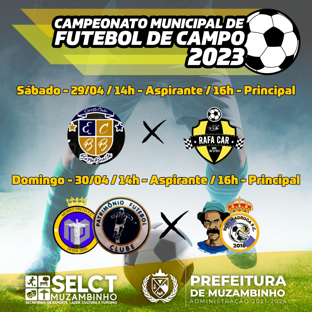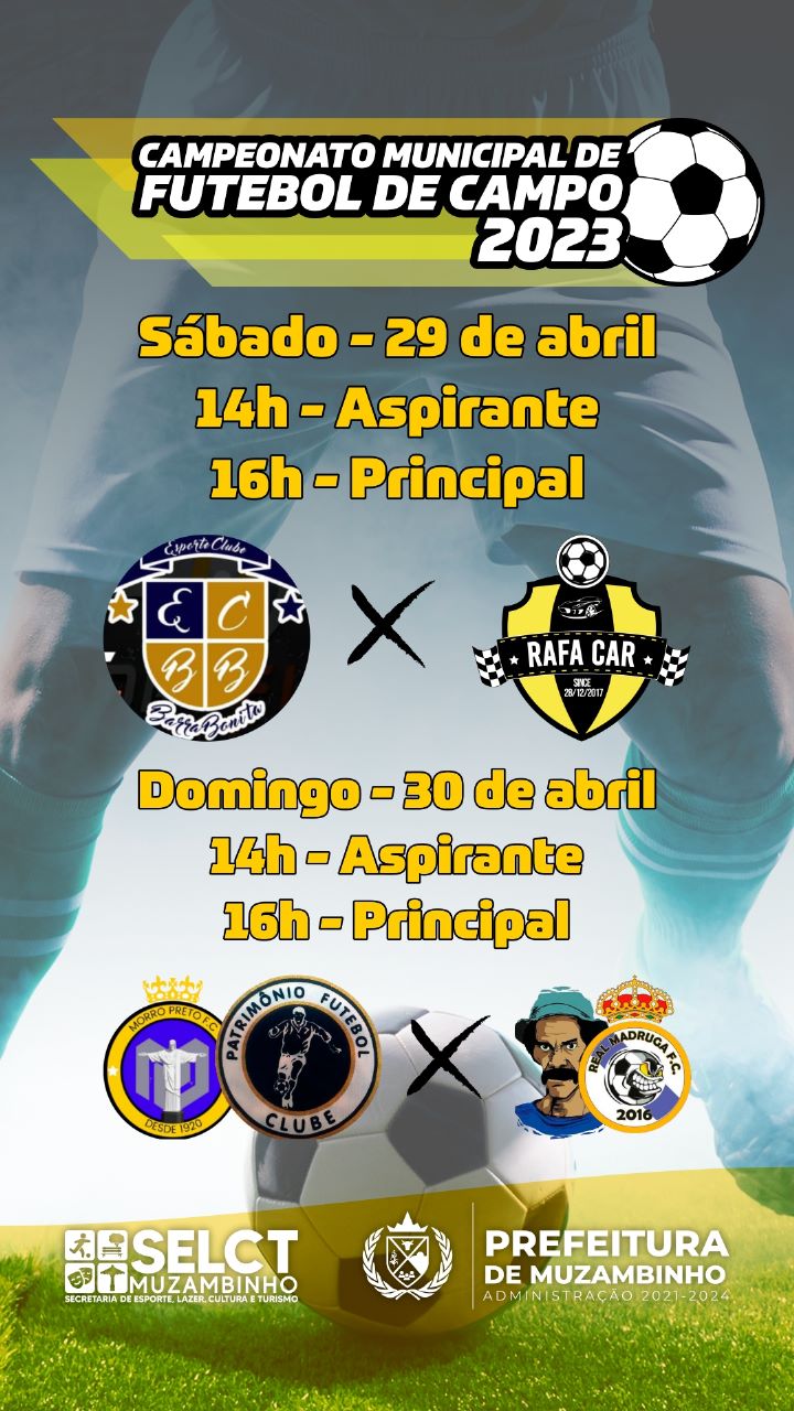 Confira os jogos da próxima rodada do Campeonato Municipal de Futebol de Campo 2023 no Estádio Municipal Professor Antônio Milhão. Estão em disputa das Taças Antônio Donizette Magalhães do Prado (“Ratinho”) e José Carlos de Lima.