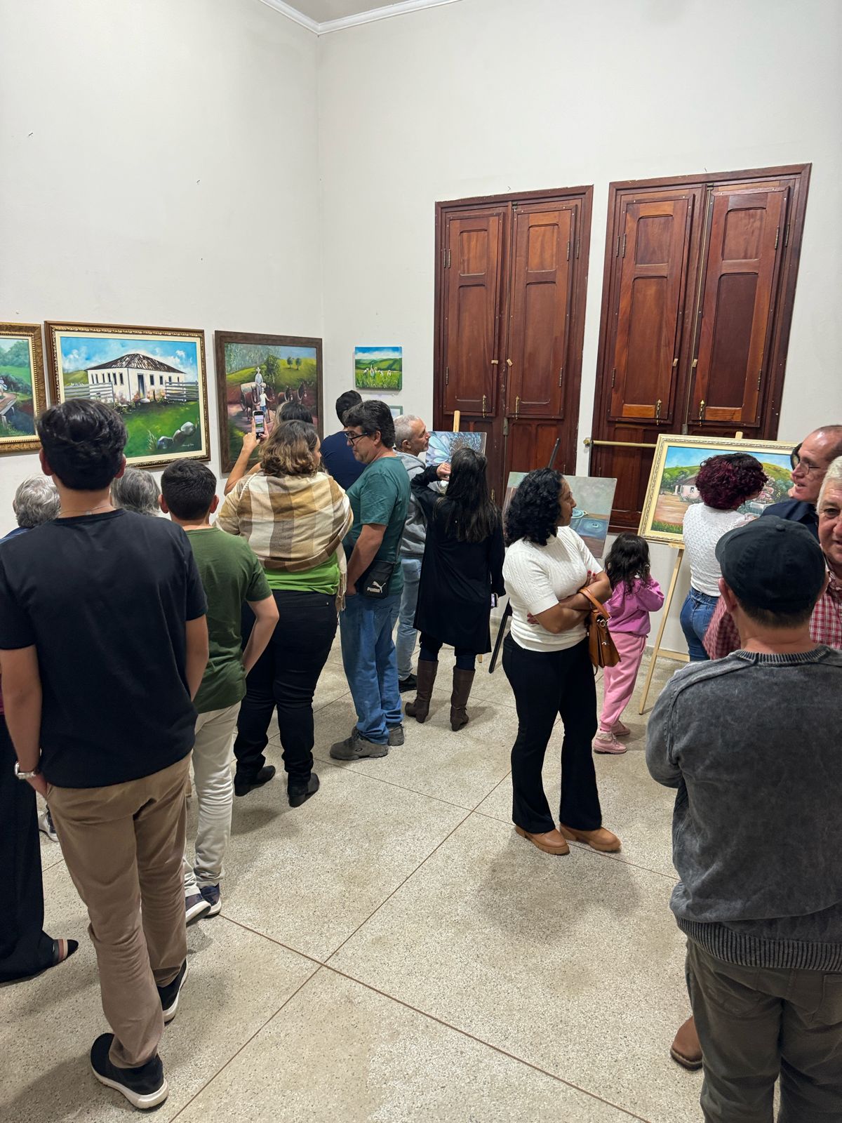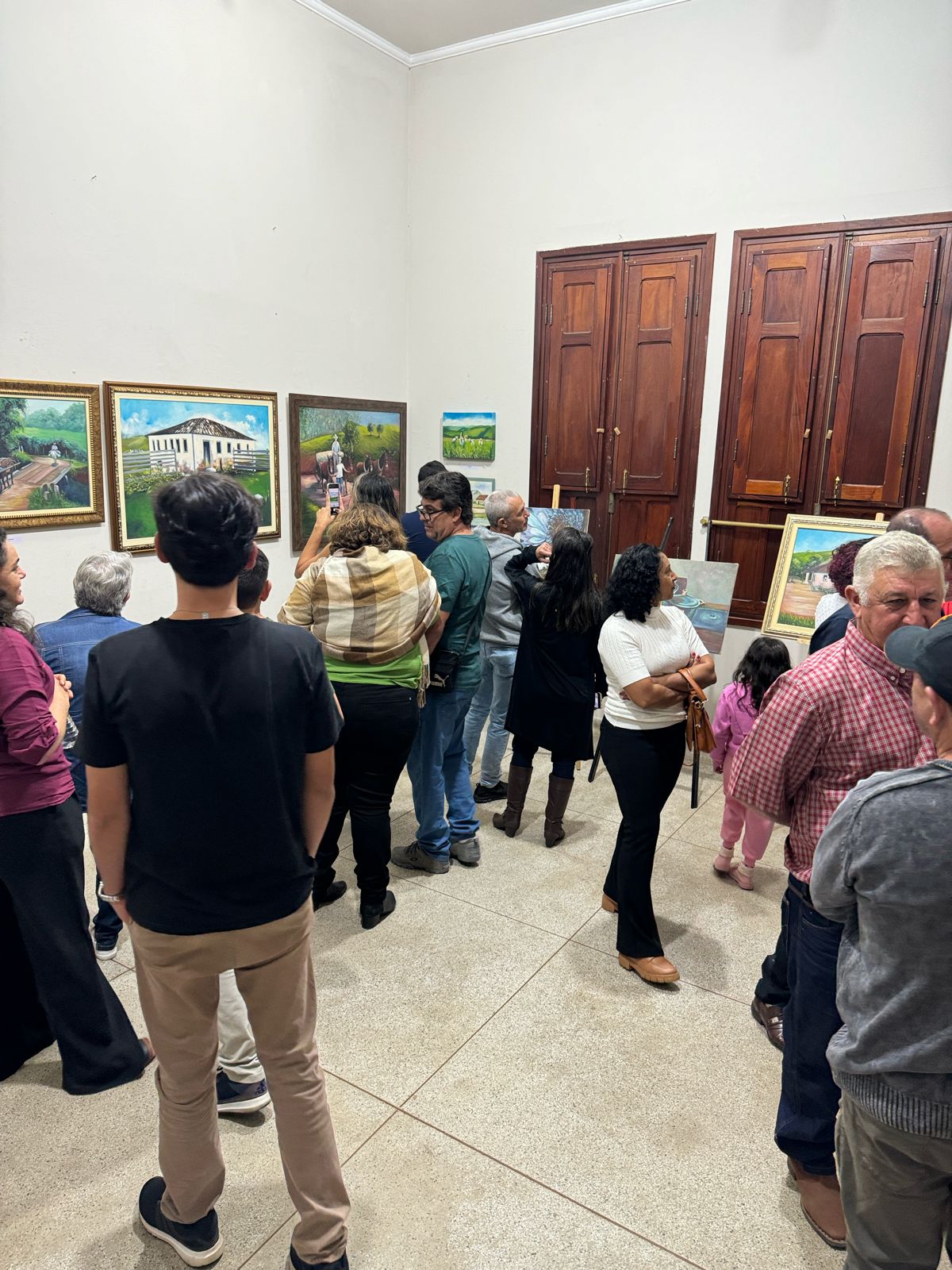 A mostra apresentou as cativantes obras da renomada artista Marta Aparecida Zandomenighi, levando o público a uma jornada pela pureza e espiritualidade do cotidiano no campo. Amigos e familiares se reuniram para prestigiar a arte desta talentosa pintora, mergulhando na beleza e profundidade das obras expostas.