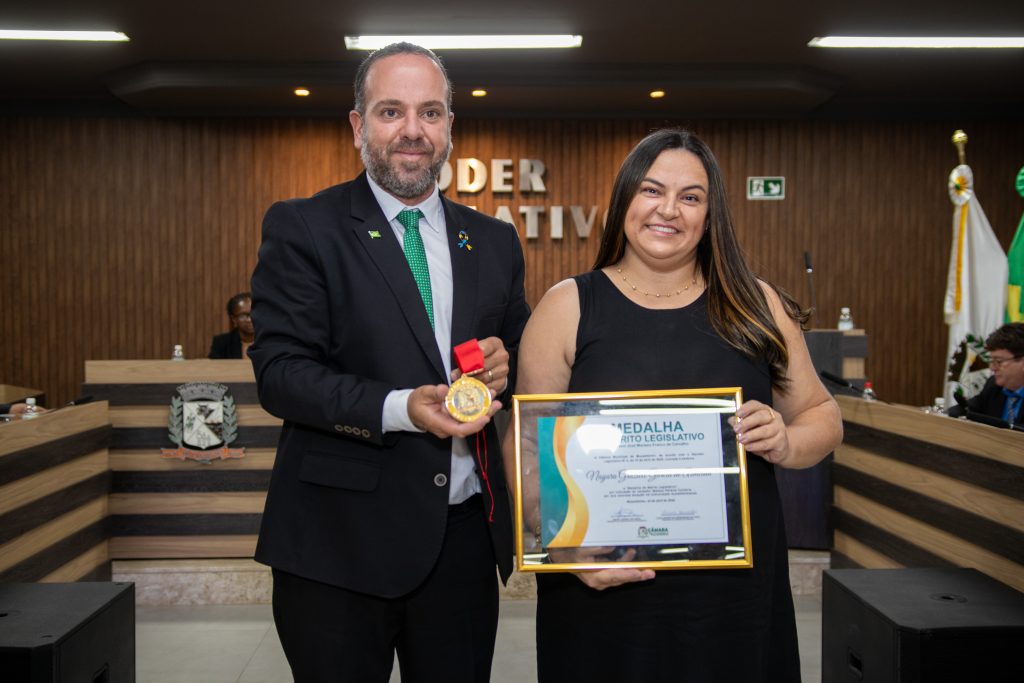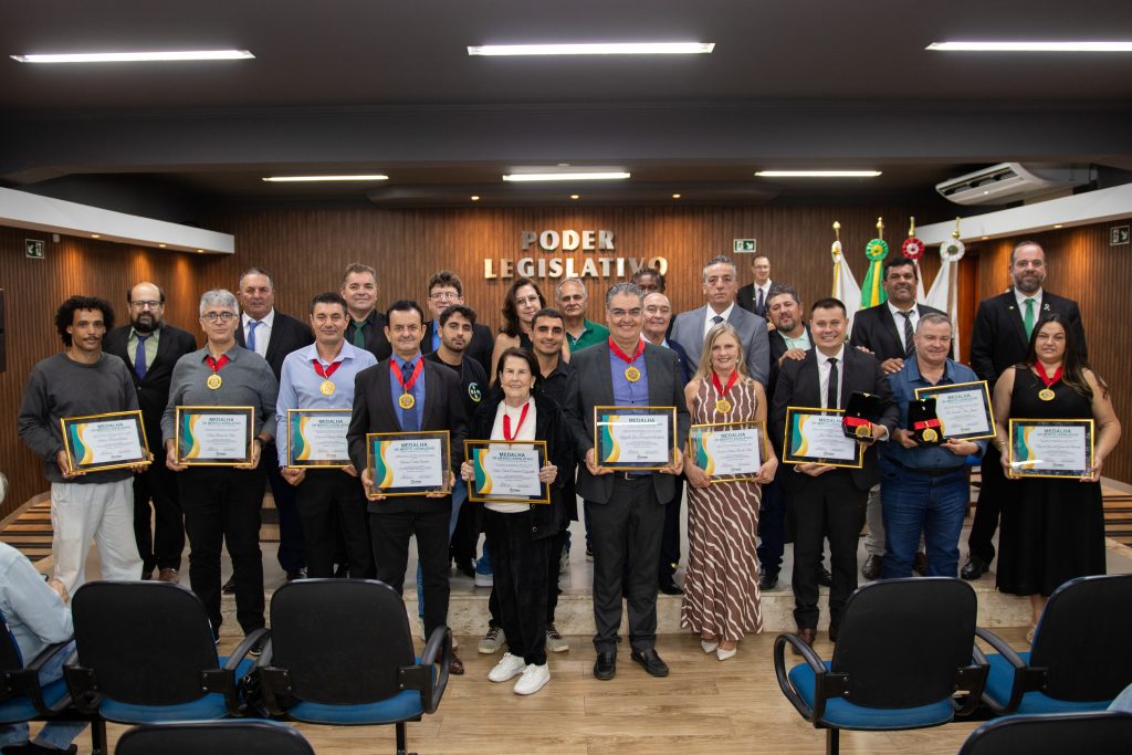 A iniciativa atende Decreto Legislativo que autoriza a Concessão de Medalha de Honra ao Mérito Legislativo, Comenda Professor Dr. José Mariano Franco de Carvalho. A vereadora Lúcia Bernardes fez a leitura anunciando os homenageados e as respectivas indicações.