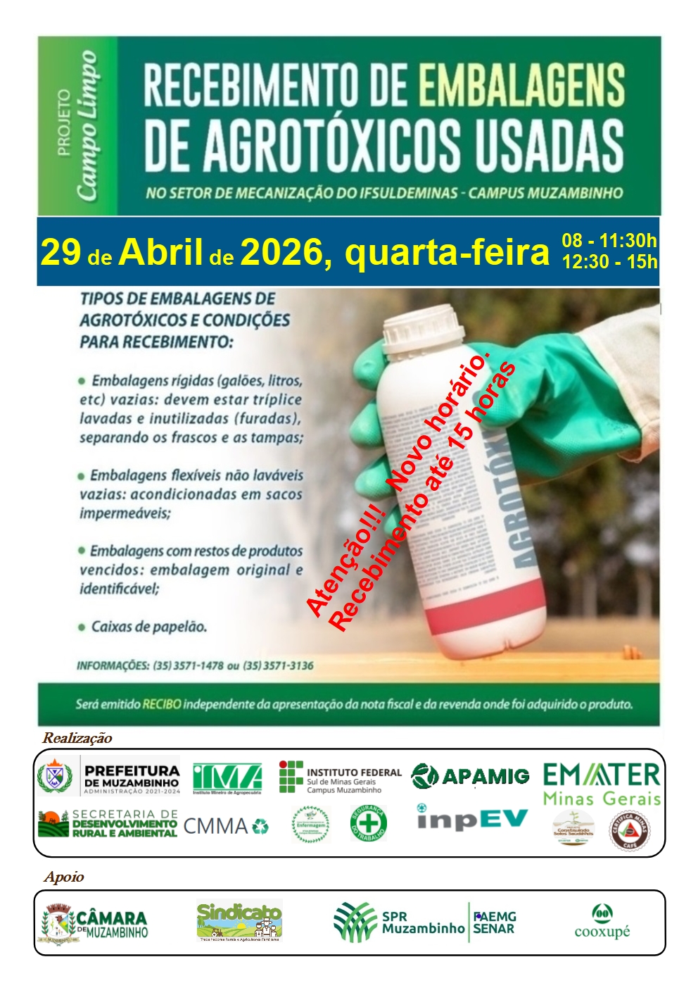 Estaremos aguardando no IFSULDEMINAS Campus Muzambinho, setor de mecanização.
