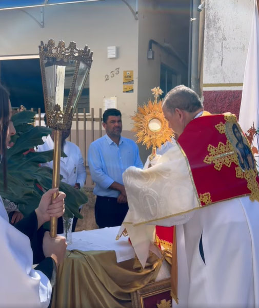 A bênção do Santíssimo, conduzida pelo Padre João Batista, foi acompanhada com profundo respeito pelos presentes, que se uniram em oração e louvor.