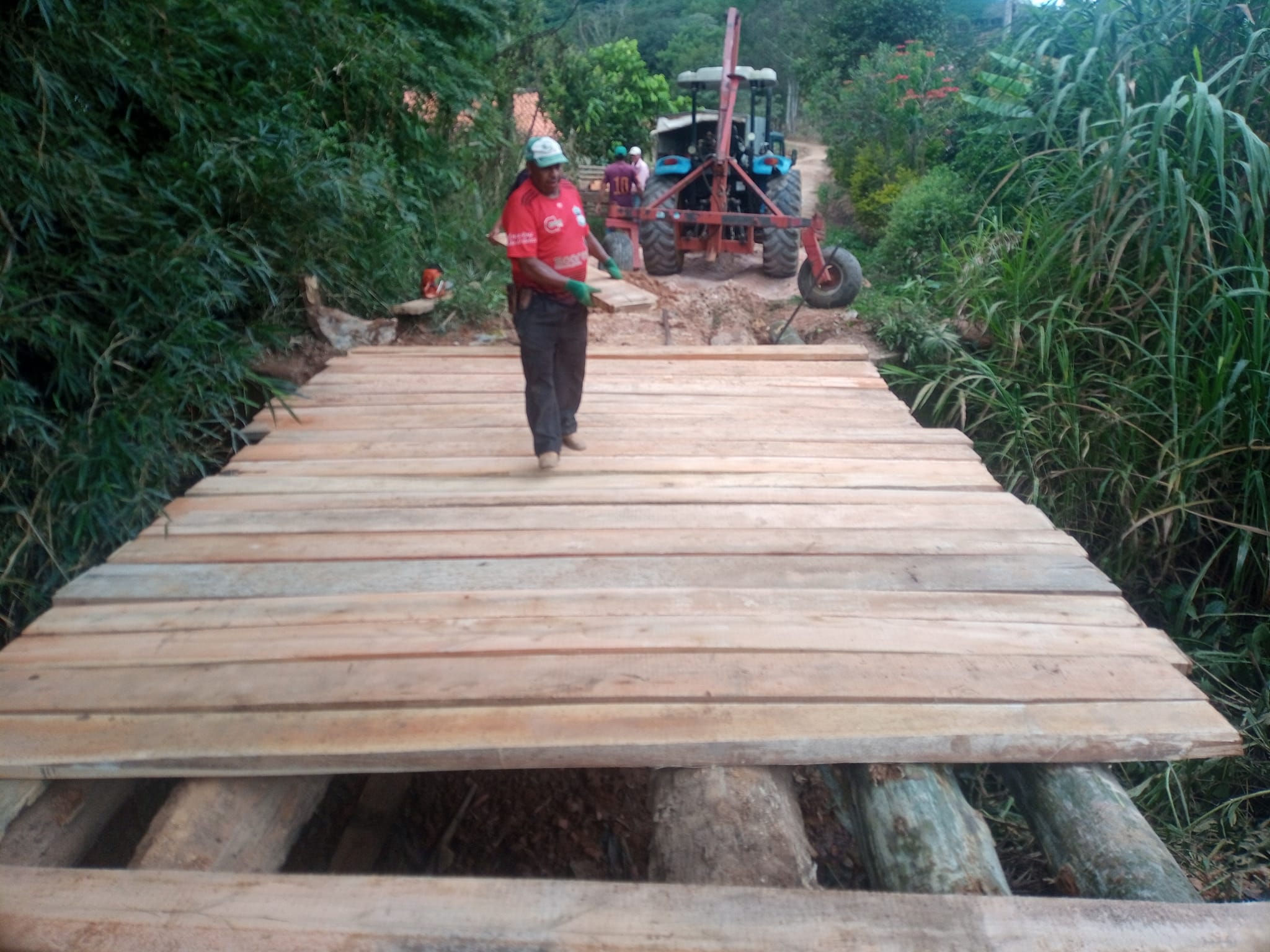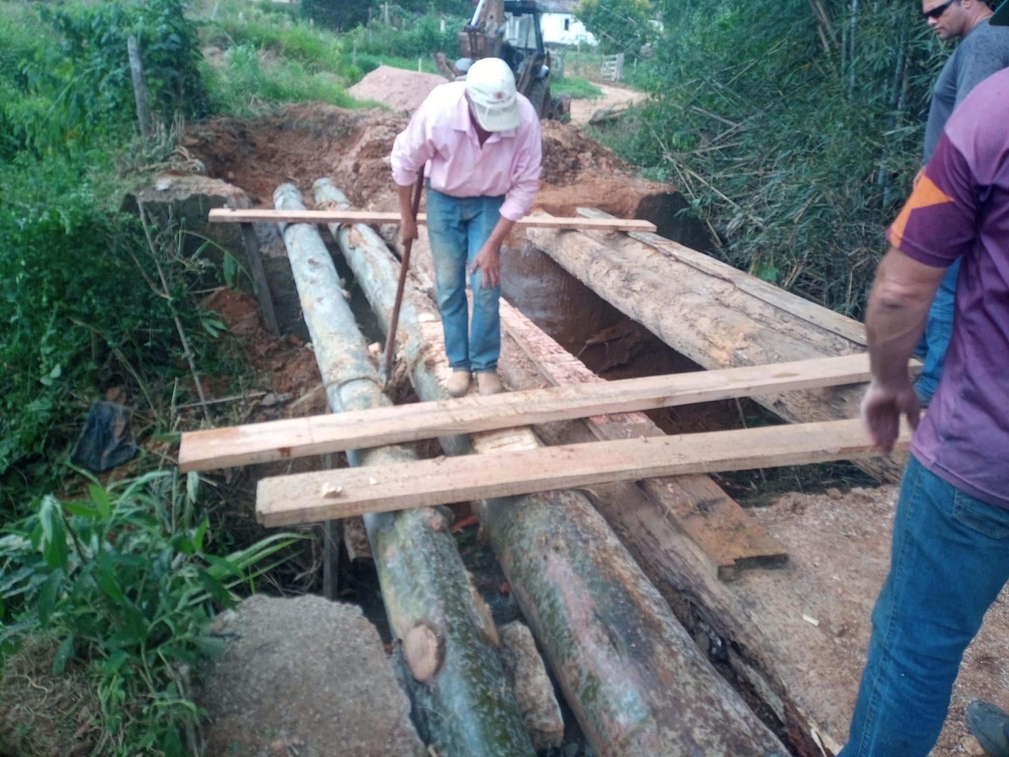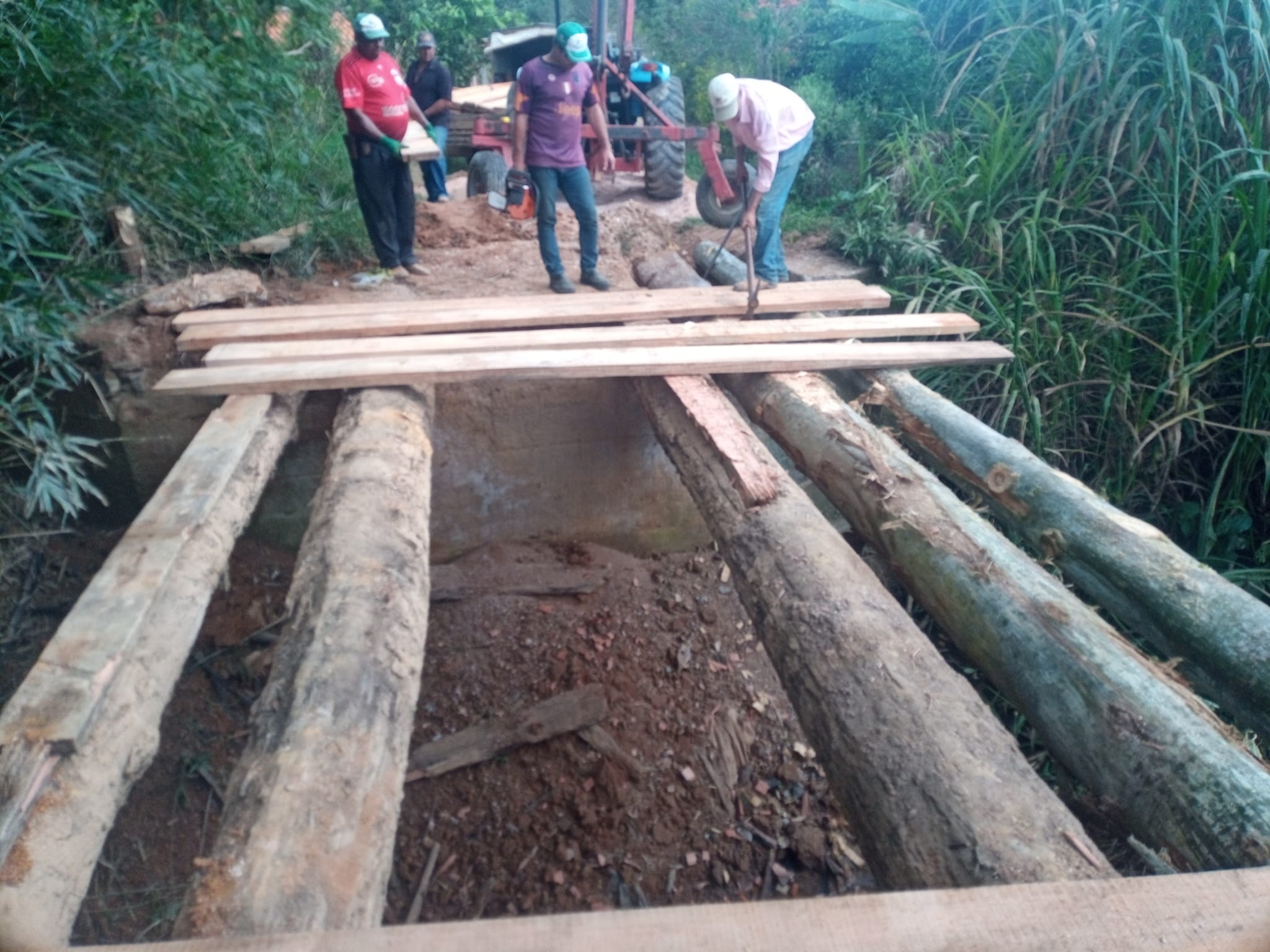 Na quinta-feira (13), a equipe de Manutenção de Estradas Rurais de Muzambinho desmanchou a ponte em local próximo ao campo da Fazenda São José e iniciou a construção de uma nova ponte. No local, foi necessário trocar duas vigas de madeira da ponte que estavam quebradas. “Estamos reforçando a ponte agora com mais vigas dando firmeza nas pranchas para mais segurança no local. Vigas de eucalipto doadas pela moradora Nair Marcon”, disse Marcelo Araújo, do Departamento de Pontes e Mata-burros. O trabalho deverá ser concluído nesta sexta-feira (14).