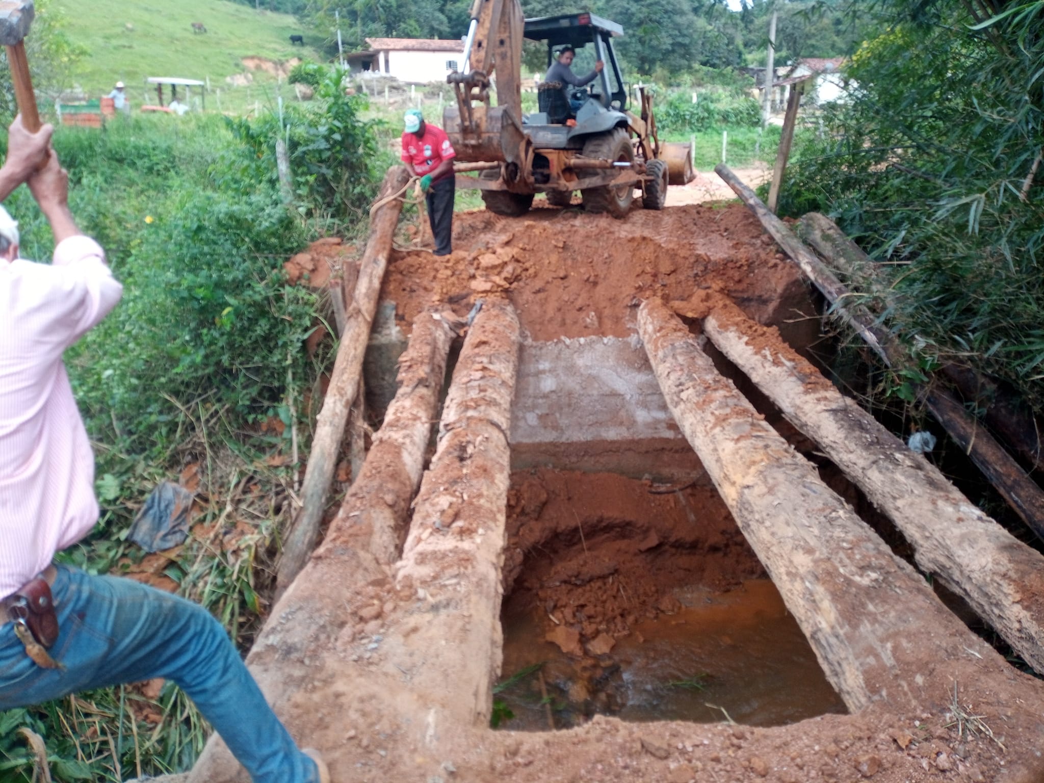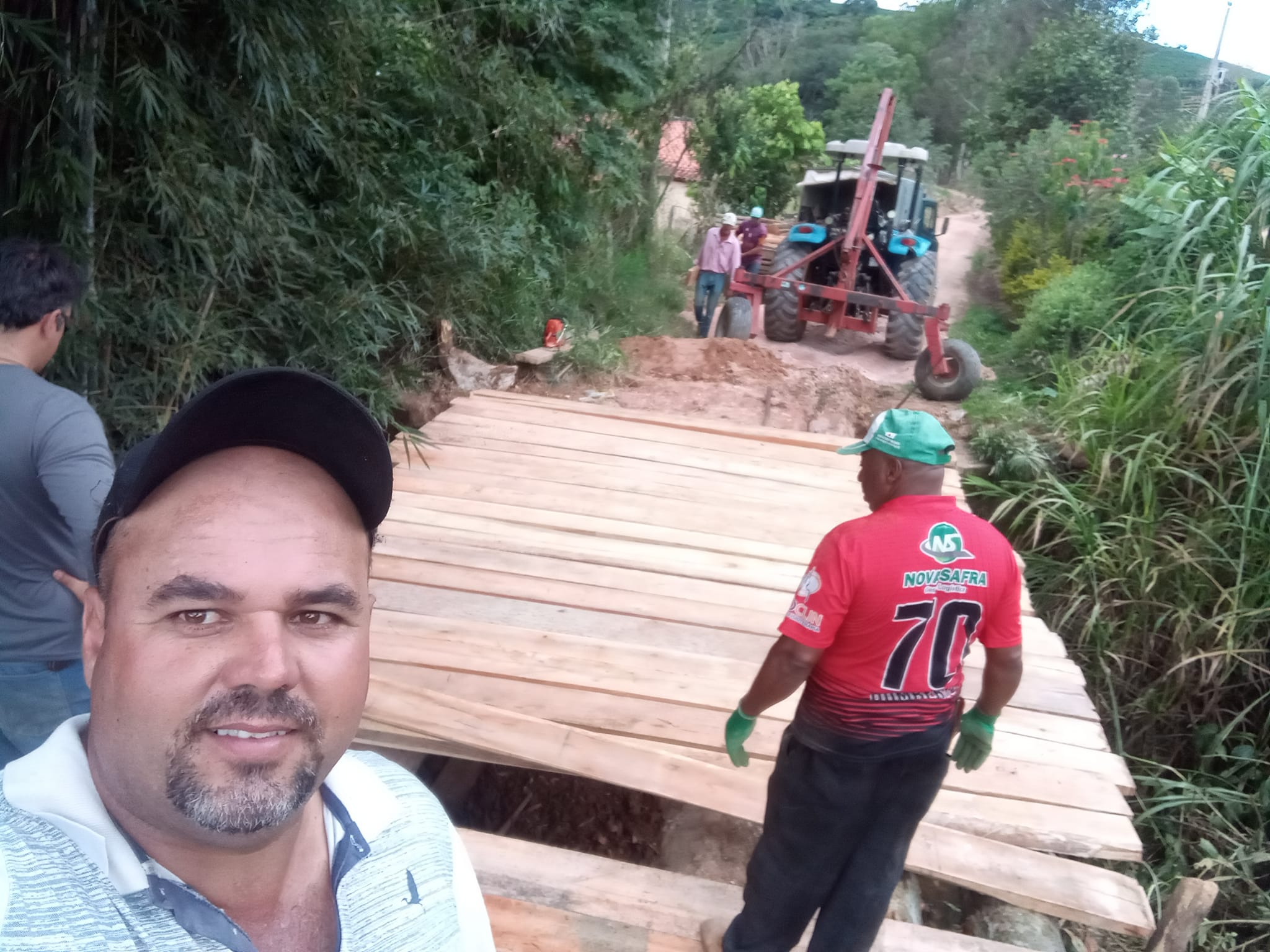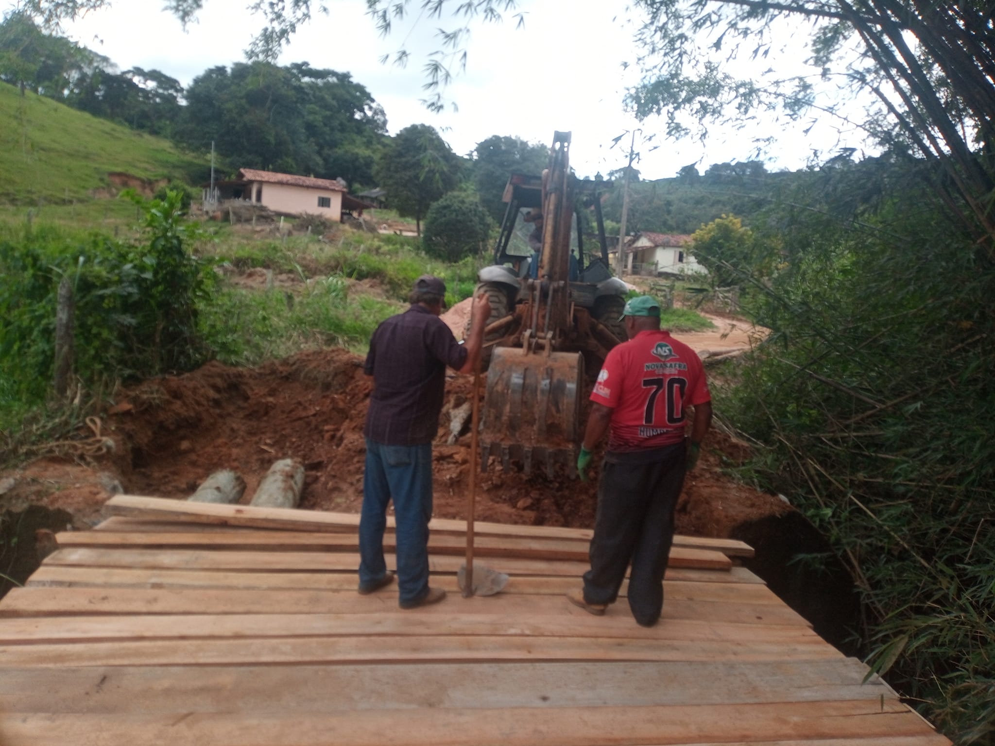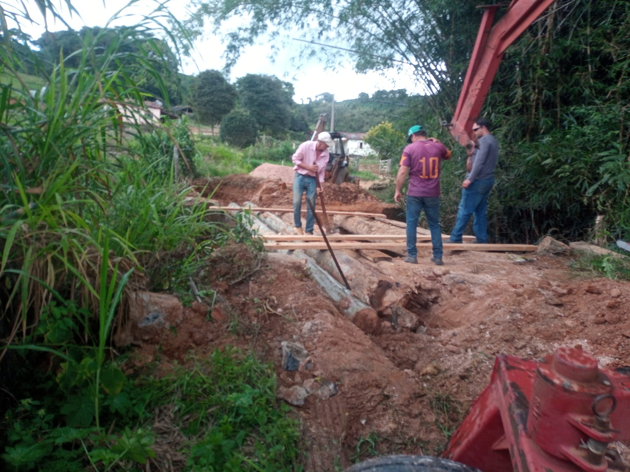 Na quinta-feira (13), a equipe de Manutenção de Estradas Rurais de Muzambinho desmanchou a ponte em local próximo ao campo da Fazenda São José e iniciou a construção de uma nova ponte. No local, foi necessário trocar duas vigas de madeira da ponte que estavam quebradas. “Estamos reforçando a ponte agora com mais vigas dando firmeza nas pranchas para mais segurança no local. Vigas de eucalipto doadas pela moradora Nair Marcon”, disse Marcelo Araújo, do Departamento de Pontes e Mata-burros. O trabalho deverá ser concluído nesta sexta-feira (14).
