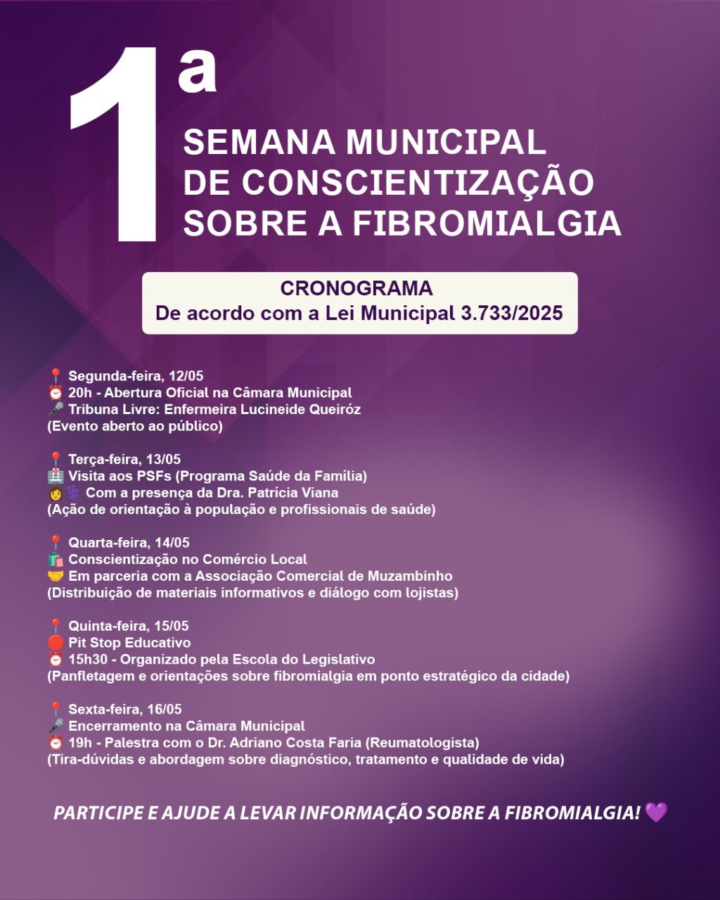 PARTICIPE E AJUDE A LEVAR INFORMAÇÃO SOBRE A FIBROMIALGIA!