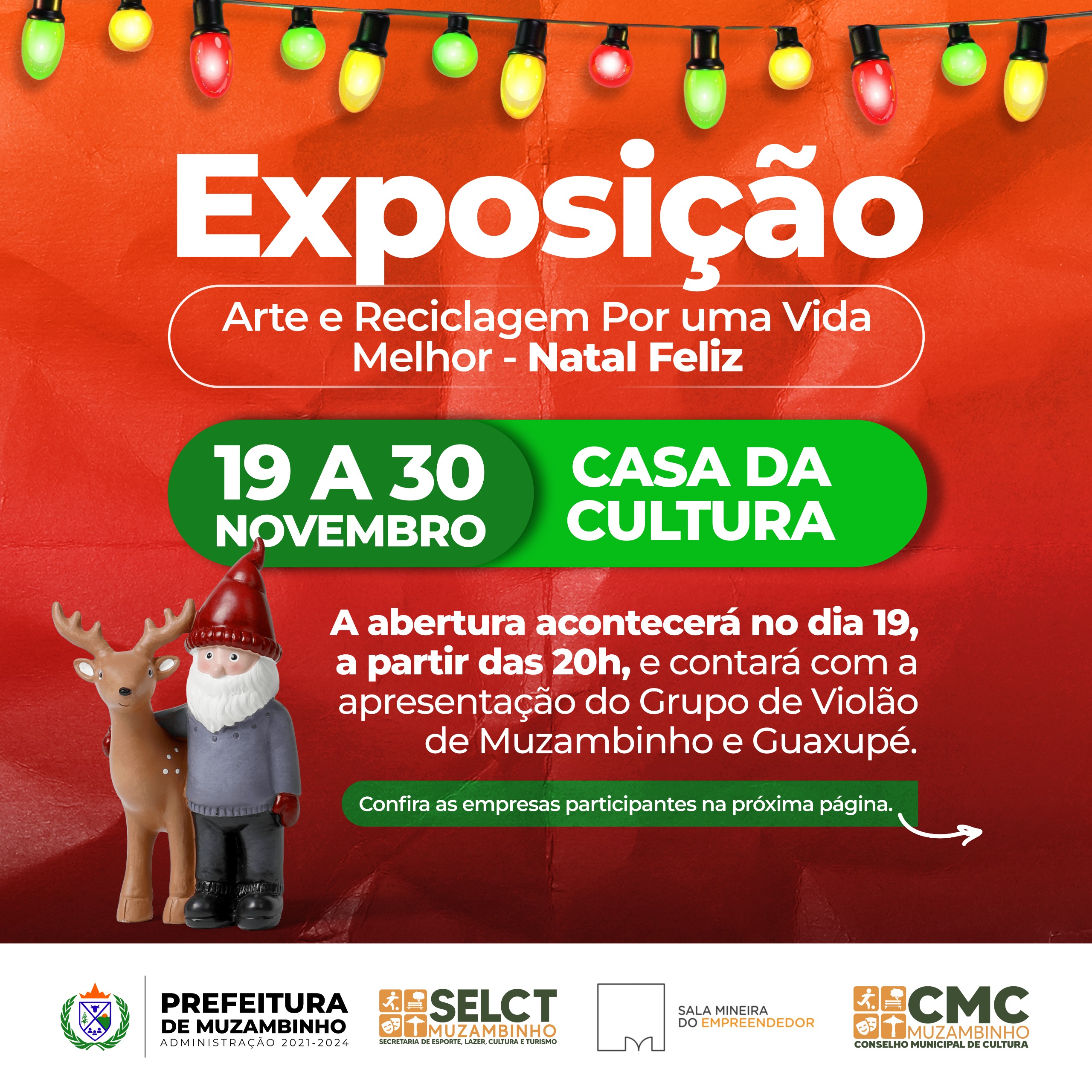 Acontece de 19 a 30 de novembro, a Exposição Arte e Reciclagem Por uma Vida Melhor – Natal Feliz, na Casa da Cultura em Muzambinho.