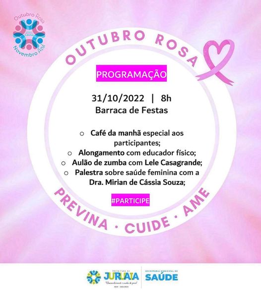 OUTUBRO ROSA: Secretaria Municipal de Saúde de Juruaia tem programação especial