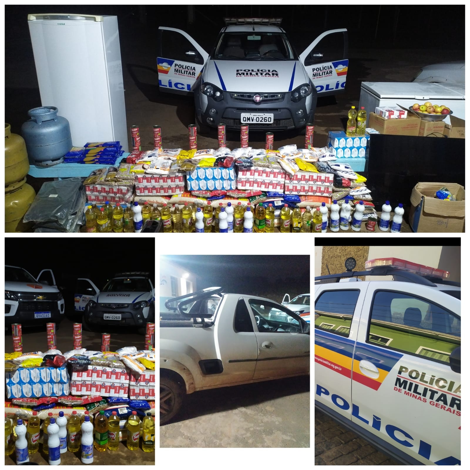 – Inúmeras unidades de mantimentos diversos (arroz, açúcar, macarrão, molho de tomate, óleos, caixas de leite, entre outros)