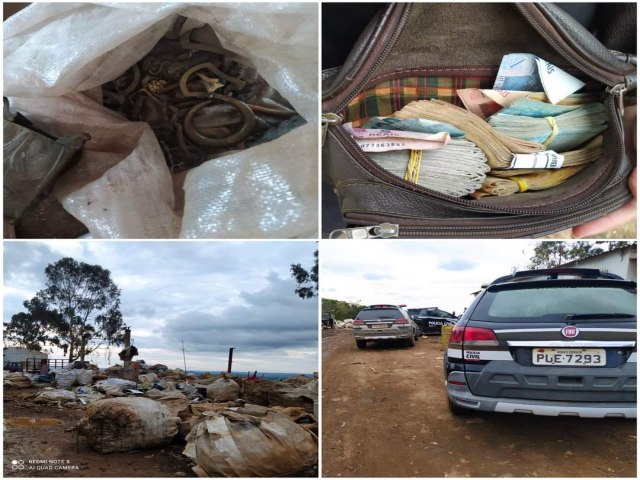 Durante as diligências, foram apreendidos objetos que se assemelham a alças metálicas de jazigos, dentre outros artefatos, assim como foi apreendido o valor aproximado de R$ 50.000,00 em dinheiro, um aparelho celular e um caderno de anotações, tudo visando apurar a procedência e auxiliar nas investigações. O Inquérito Policial tramita pela Comarca de Poço Fundo.