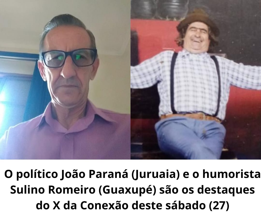 Neste sábado (27), às 10 horas, presença marcante do experiente político João Paraná, vice-prefeito por vários mandatos em Juruaia. Uma entrevista que promete um bate-papo agradável, com muitas histórias e contribuições. Às 11 horas, o empresário guaxupeano e humorista Sulino Romeiro chega relatando a sua carreira, contando histórias e estórias, levando alegria.