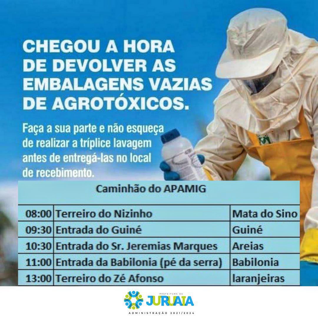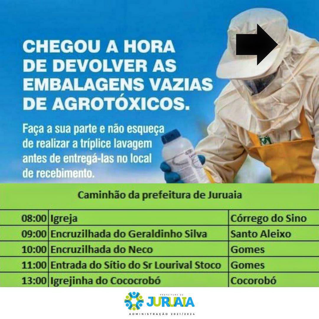 Amigo (a) produtor (a) rural , em busca de contribuir com o meio ambiente, organizamos o Dia do Campo Limpo de Juruaia para recolhimento de embalagens vazias de defensivos agrícolas Chegou a hora de fazer o descarte consciente da sua embalagem vazia.